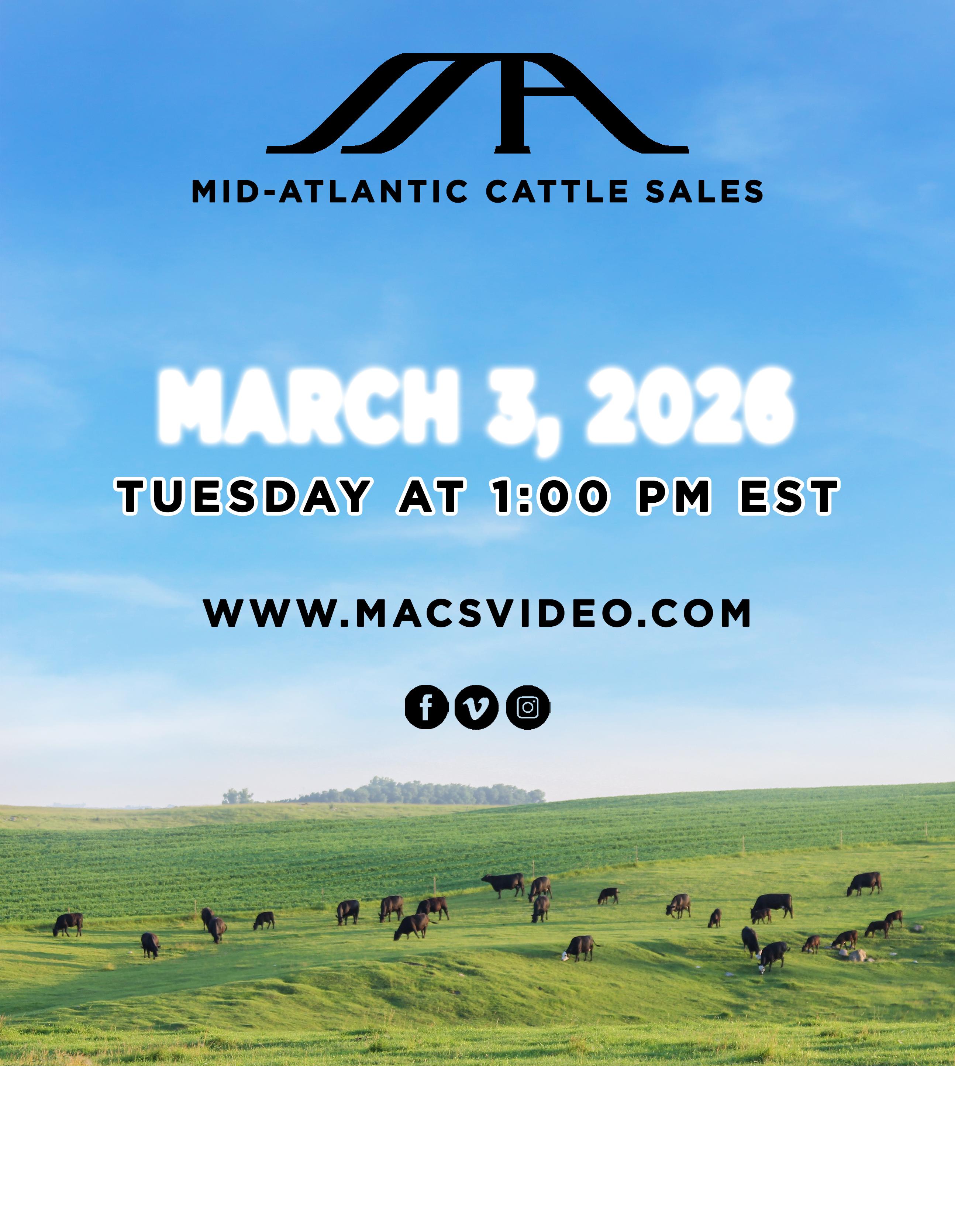 Mid-Atlantic Cattle Sales - Tuesday, March 3, 2026 - 1:00 pm est.
