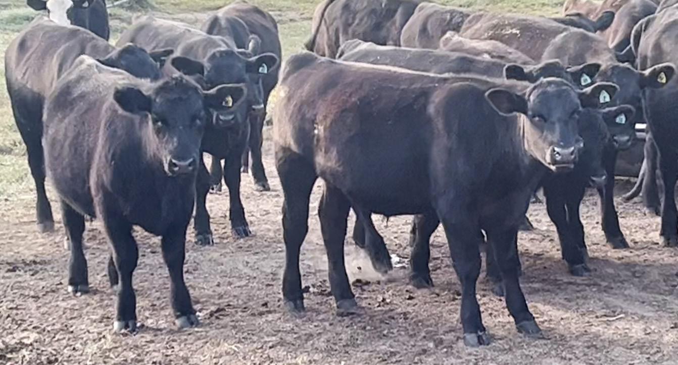 Comments: Broke to bunks and waters. A fancy set of natural backgrounded heifers all coming off the Bruce Richardson Farm. Calves were born last fall, double vaccinated, and weaned for 60+ days. They are all blk/bwf with Angus and Simmental influence in the calves. Reputational calves that are GAP-4 and can be EID tagged for Verified Natural with IMI. GAP certificate can transfer at no cost to buyer (GAP#, Exp 12/20/25). Will be 60 head for the load at about 43,000 lbs