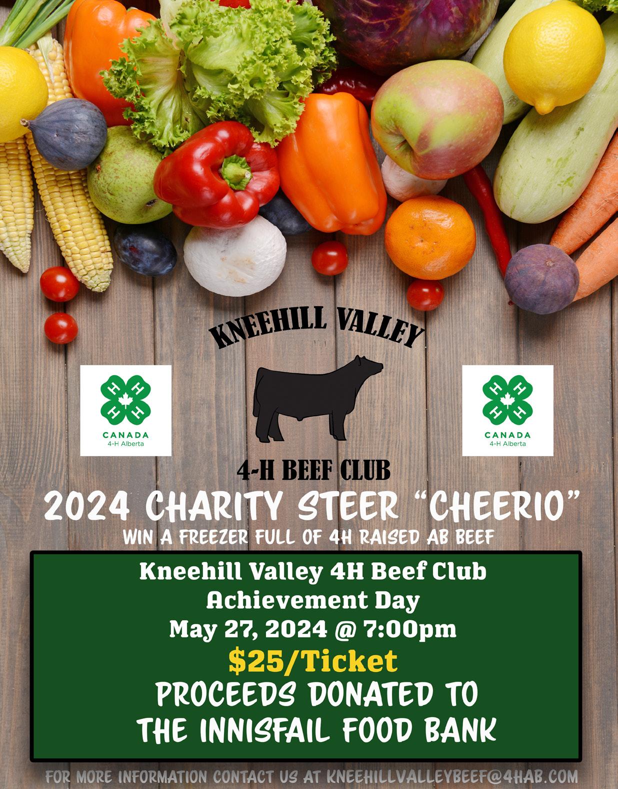 Hi, my name is Kaden Hollman and this is my sixth year in 4H. This year I have five projects on the go; I have a steer named Poker, a carcass steer, a heifer, and two cow-calf pairs. I would like to thank my last year’s buyer Timcon Construction, as I am very thankful for the support last year and all the support from my past years in the club. I would then like to invite everyone to our Kneehill Valley 4-H beef Club show and sale on Monday, May 27th, 2024. We also have a charity steer named Cheerio, which we’ll be selling tickets to win the steer, and the proceeds will be going to the Innisfail Food Bank.