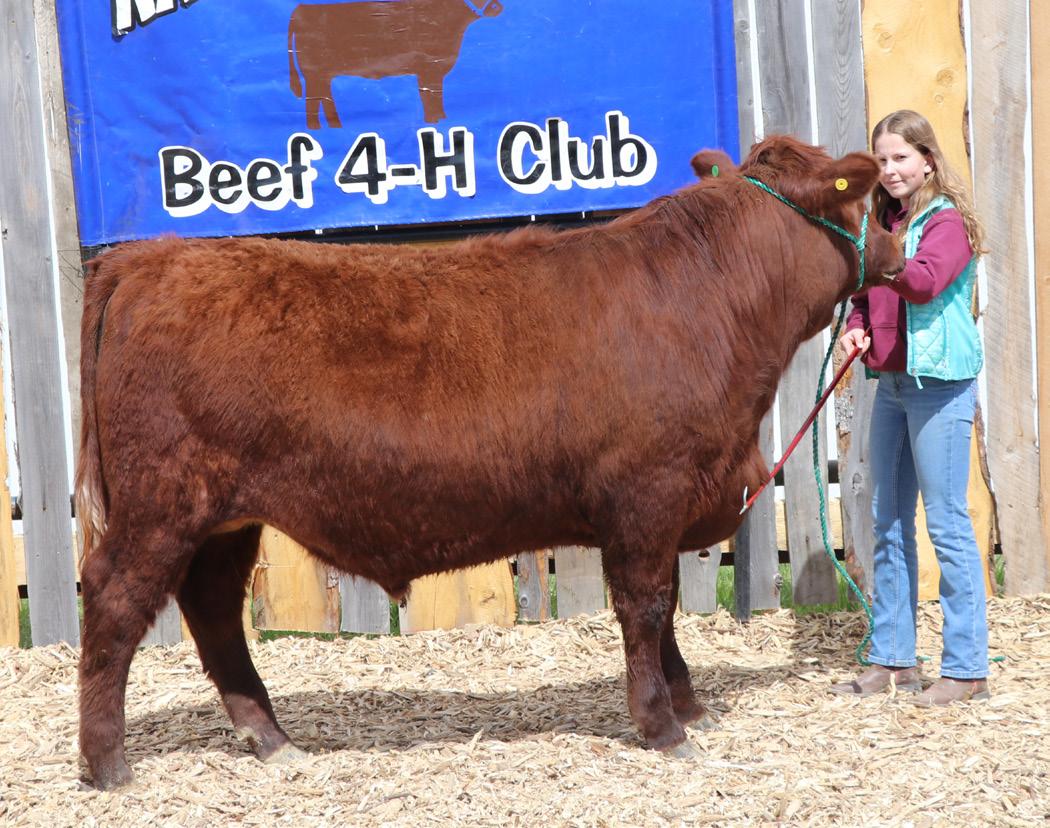 Hi my name is Laramie Siemens. This is my first year in 4H beef. My steer’s name is Diesel, he’s a Red Angus. I’ve enjoyed learning how to public speak and working with my project