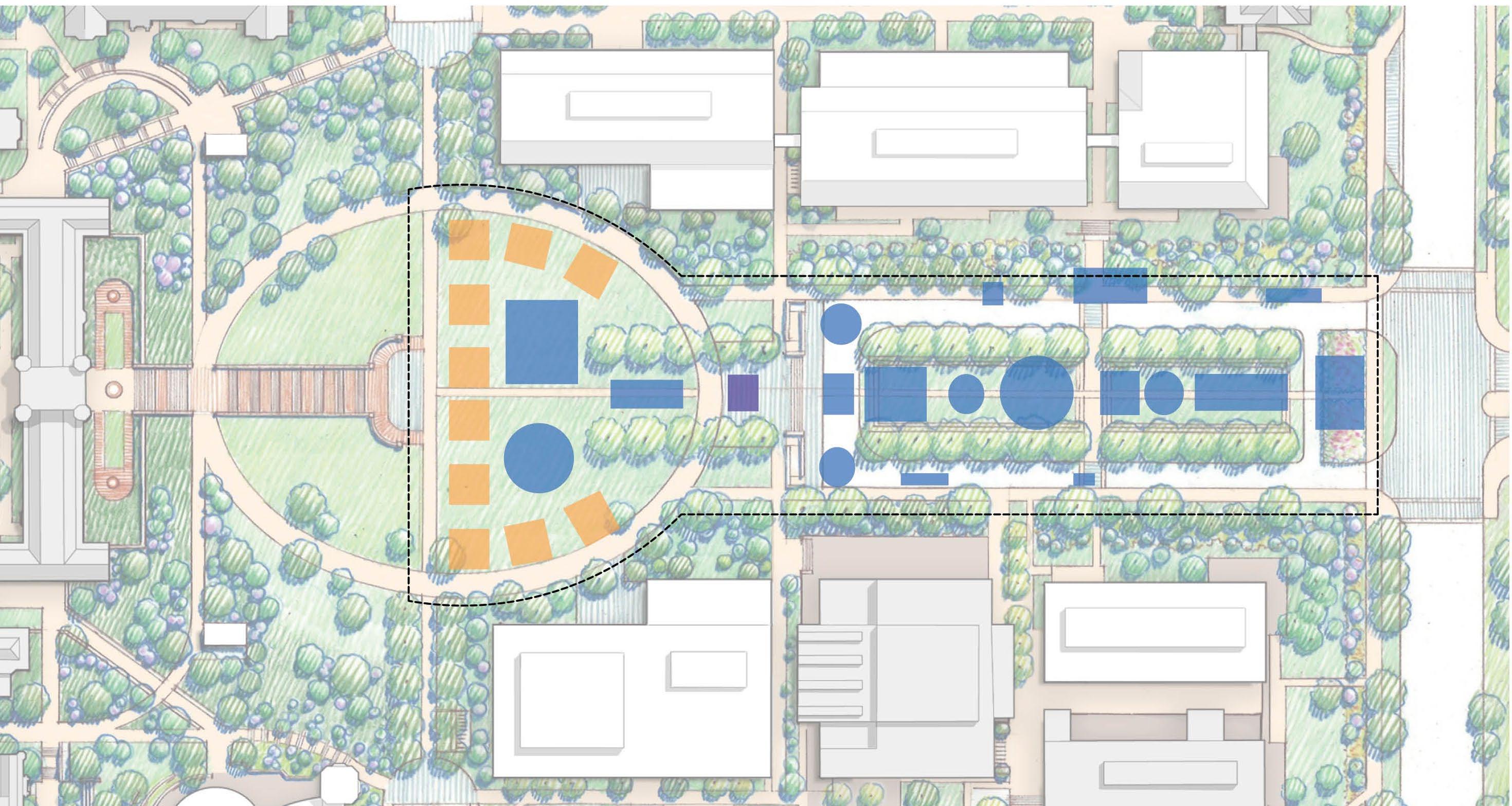 University commencement exceeds the capacity of Brookings Quadrangle. A new venue is needed to accommodate the event, but the new venue must retain an intimate connection with Brookings Hall.
