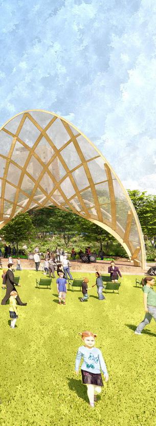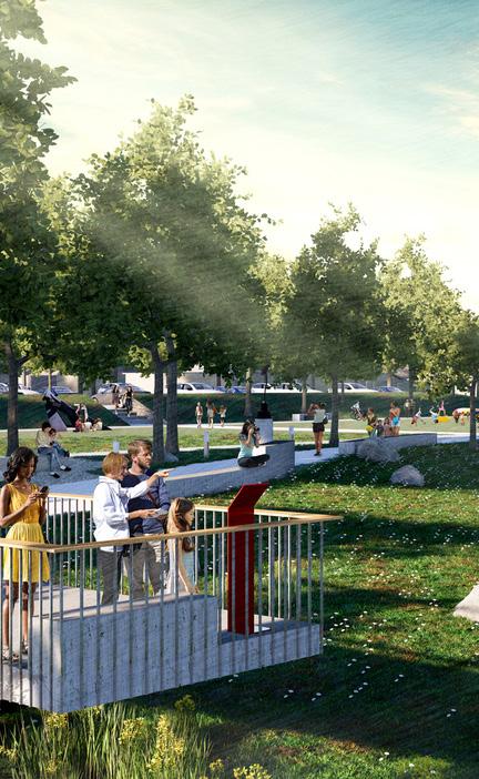 The South Loop Link project is part of the reimagining of the I-670 corridor to create an enhanced, green mobility hub within Downtown Kansas City, Missouri, that emphasizes multimodal transportation including enhanced vehicular, pedestrian, bicycle, and transit connections; regional job access; green and healthy living spaces; private development; and climate responsiveness. BNIM is part of a multidisciplinary team with HNTB and OJB, contributing to this futurefocused initiative for Kansas City. Situated between the southern edge of the Central Business District and northern edge of the Crossroads District, the new South Loop Link will consist of a 5.5 acre site on top of a below-grade portion of I-670, transforming this area into a downtown destination and community connector.