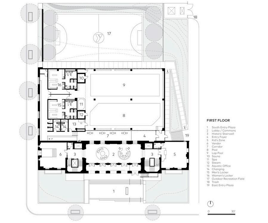 goal of this adaptive reuse project was to preserve original streetscape massing and historic features of the existing theatre while supporting the Y’s programmatic needs, unique to a health and fitness center. The resulting design is a facility that interweaves historical elements with renewed purpose and modern-day use, serving as a valuable community resource.