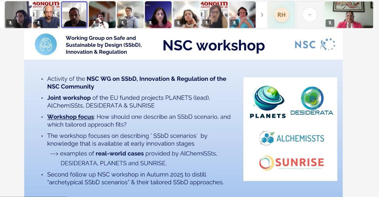 On 23 June 2025, the NSC Working Group on Safe and Sustainable by Design (SSbD), Innovation & Regulation organised an online workshop on “SSbD scenarios for advanced and incremental innovations” as a collaboration effort among several EU-funded projects: AlChemiSSts, DESIDERATA, PLANETS and SUNRISE.