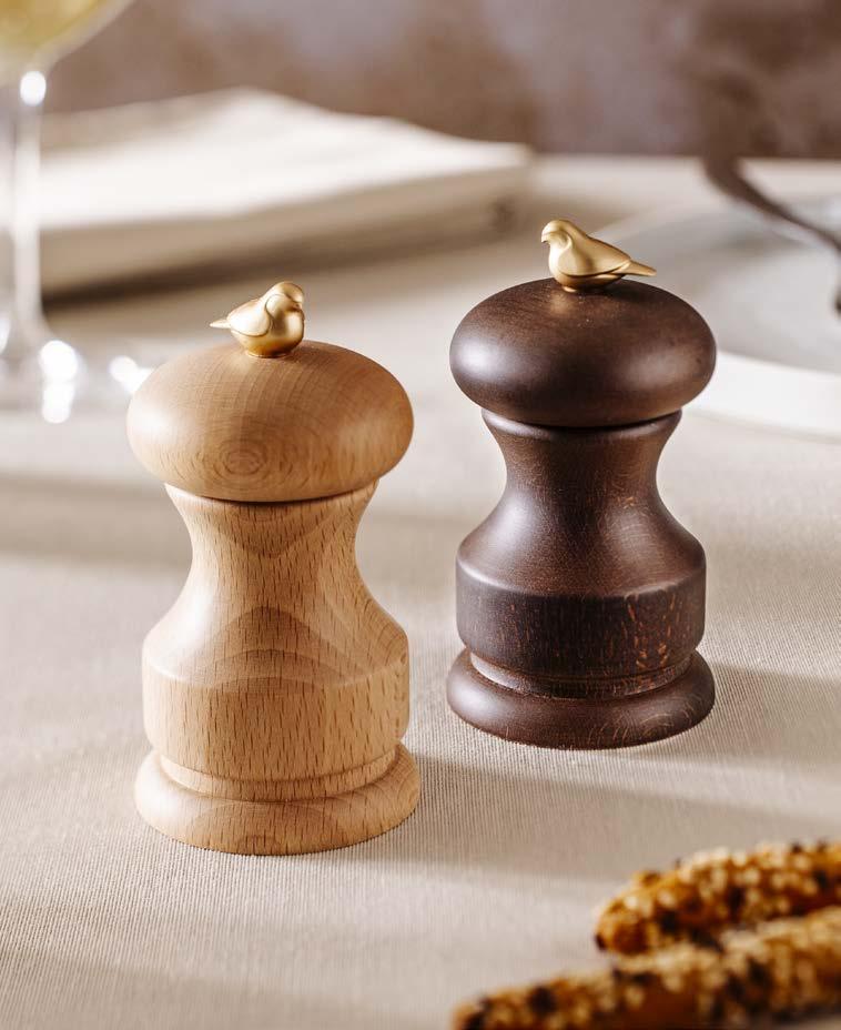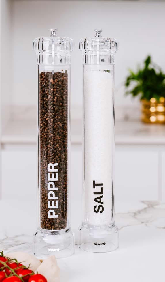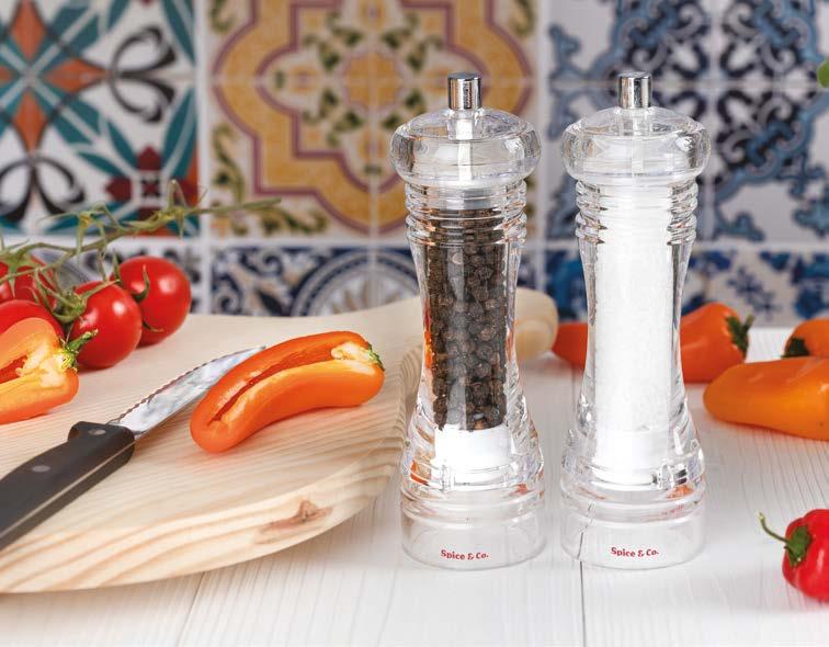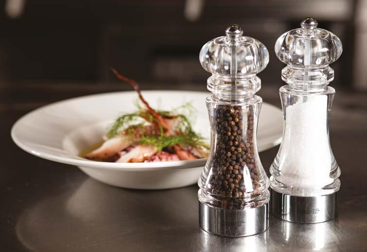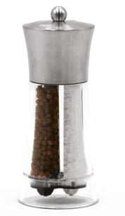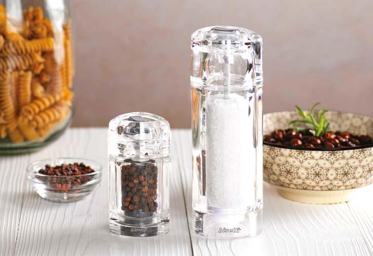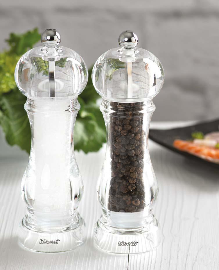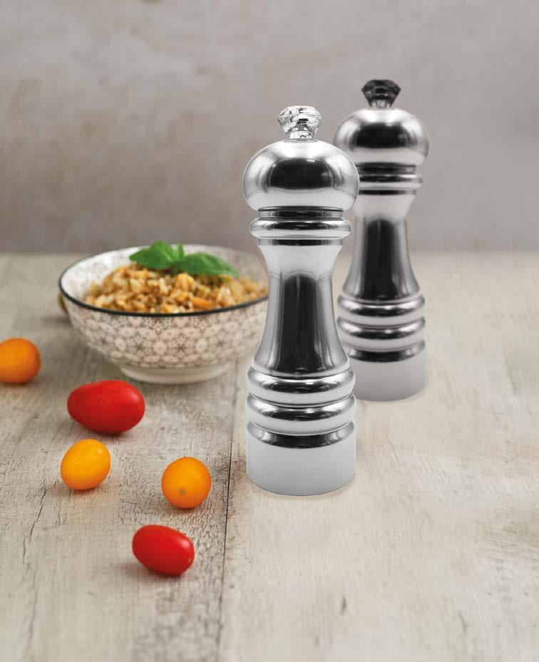 La nostra selezione di macine per il pepe e per il sale presenta una ampia varietà di collezioni che si adattano ad ogni contesto e ad ogni tavola. Partendo dalla linea legno troviamo i modelli più classici e tradizionali affiancati da modelli nuovi più lineari che prendono il nome delle più belle città italiane. Segue la linea macinapepe e macinasale in acrilico, un materiale moderno che nella sua semplice trasparenza riesce a non appesantire la tavola ma allo stesso tempo a farsi notare. Un’altra delle linee innovative è la linea macinapepe e macina sale Icons: forme conosciute come quelle degli scacchi, delle matrioske, dei birilli, si trasformano in macina pepe e macina sale aggiungendo colore e allegria ai pasti.