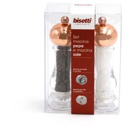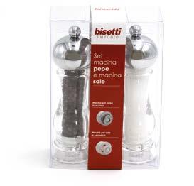 Il meccanismo dei macina sale Bisetti è in ceramica ad altissima resistenza. Per resistere alla corrosione tutti icomponenti metallici sono realizzati in acciaio inossidabile e alluminio. Il tutto garantito a norma UE e FDA per il contatto con gli alimenti.