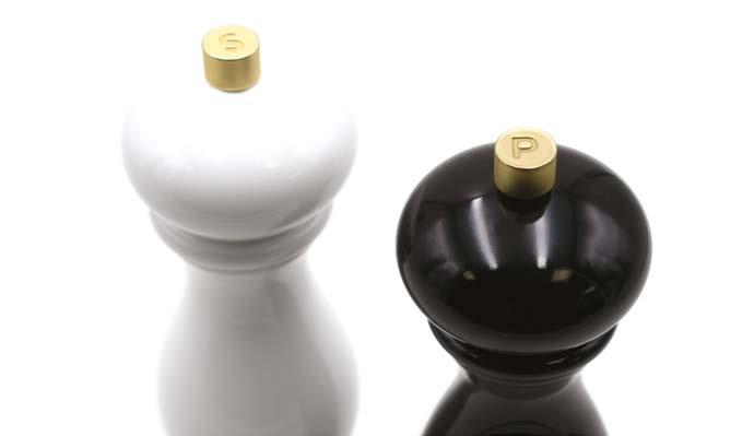 Il pomolo di regolazione permette di regolare con precisione la macinatura dei grani del pepe e del sale. I pomoli hanno incise le lettere P e S, l’incisione permette una lunga durata delle lettere che, anche dopo diversi anni, saranno sempre riconoscibili.