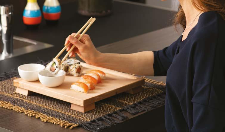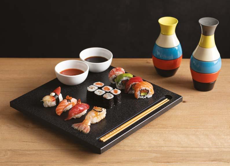 Tagliere per sushi con foro per ciotole e bacchette / Sushi serving board with holes for bowl and chopsticks