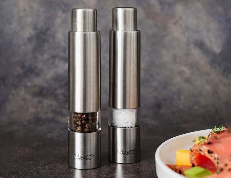 Un meccanismo specifico per pepe e per sale per garantire prestazioni ottimali. Una garanzia di 10 anni sui meccanismi e relative componenti meccaniche per una durata sempre uguale nel tempo. La sicurezza di poter sempre contare su un’azienda con 70 anni di storia.