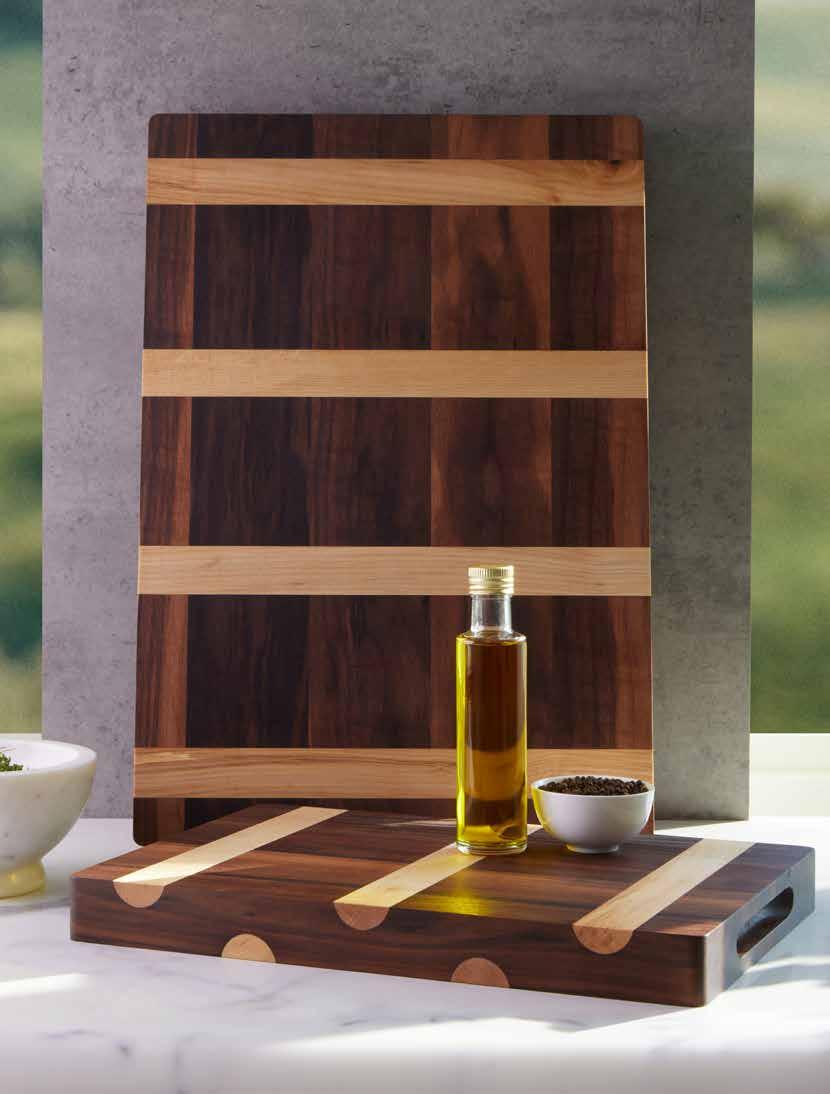 Tagliere rettangolare in noce con intarsi in frassino