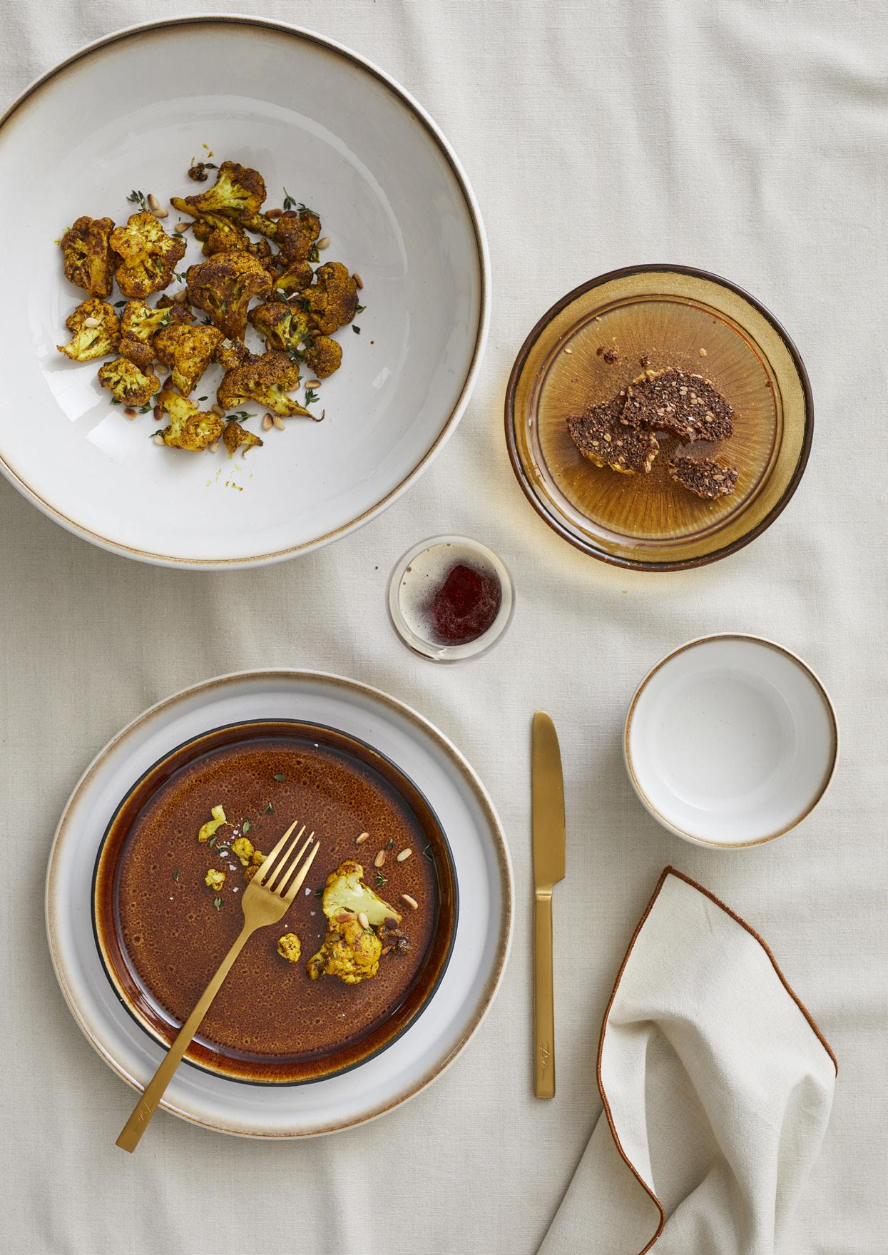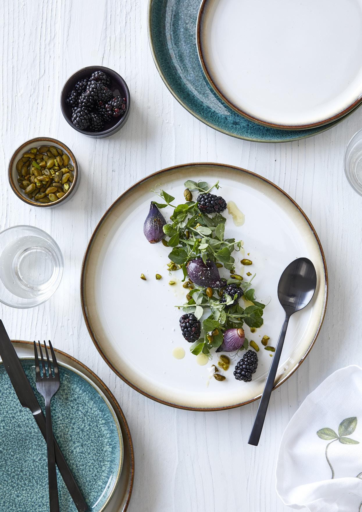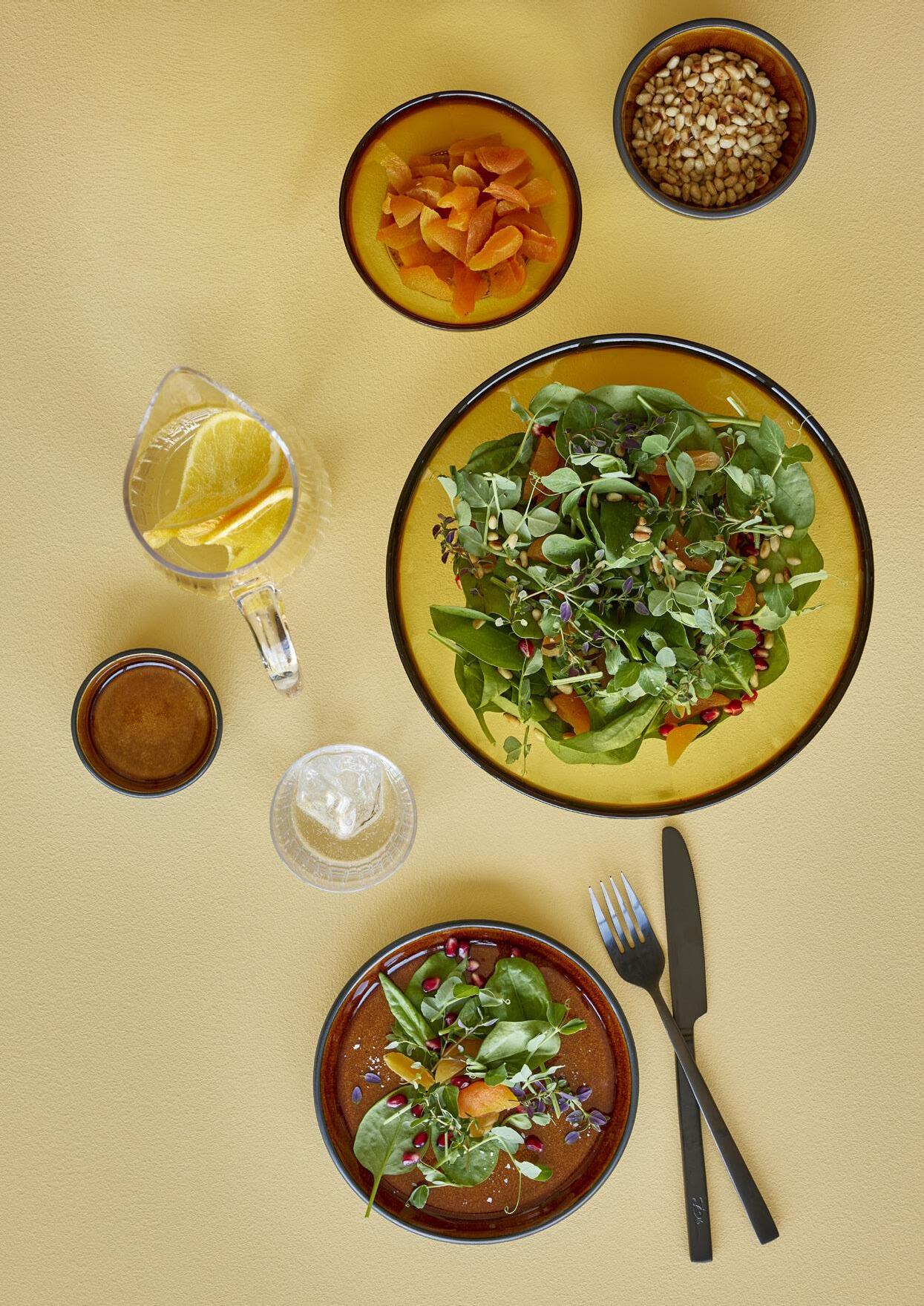 Leg med nuancerne og bland farverne både i salaten og i borddækningen.
