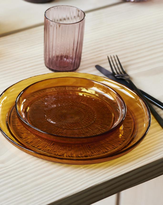 Die tollen Wassergläser aus durchgefärbtem Glas haben den gleichen hübschen, geriffelten Look wie die Kannen und Wasserflaschen der Kusintha-Serie. Die Gläser sind in Grün, Amber, Pink, Blau und in einer ganz klaren Version erhältlich.