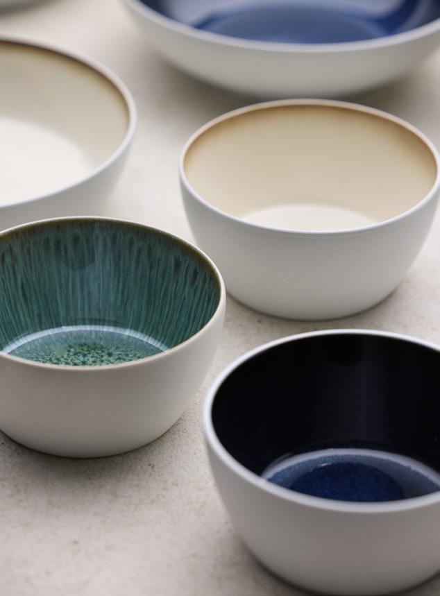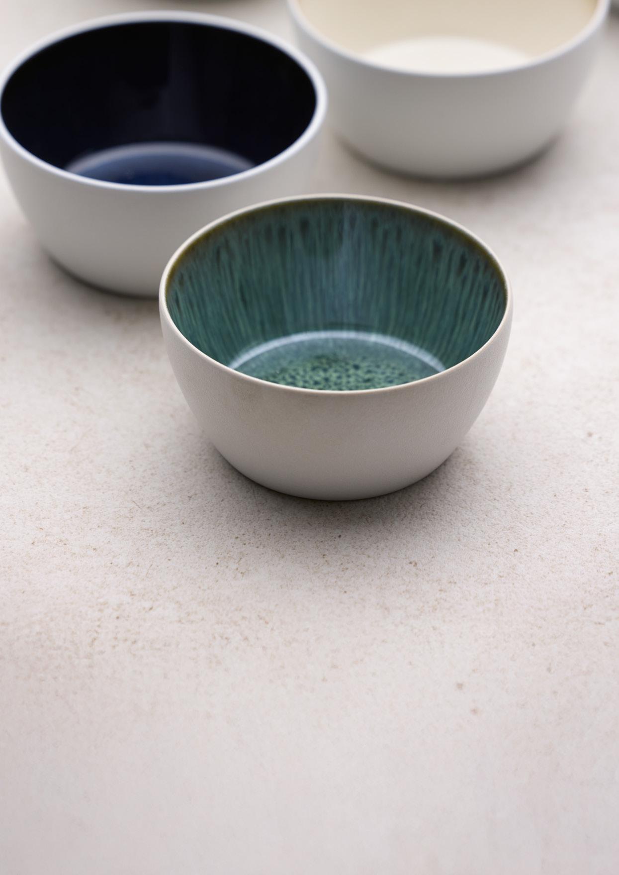 Alle BITZ’ stentøjsprodukter har den smukke, reaktive glasur, der giver hvert eneste produkt sit helt eget udtryk. Glasuren – mat som blank – reagerer forskelligt i brændingen, nuance og mønster varierer, og vi garanterer, at alle produkter er helt unikke. Farverne i Kusintha-seriens glasprodukter er afstemt til stentøjets glasurfarver. At mikse de to materialer gør hele borddækningen til noget særligt.