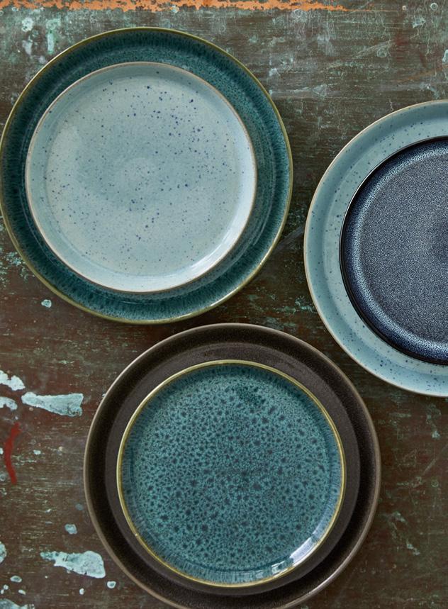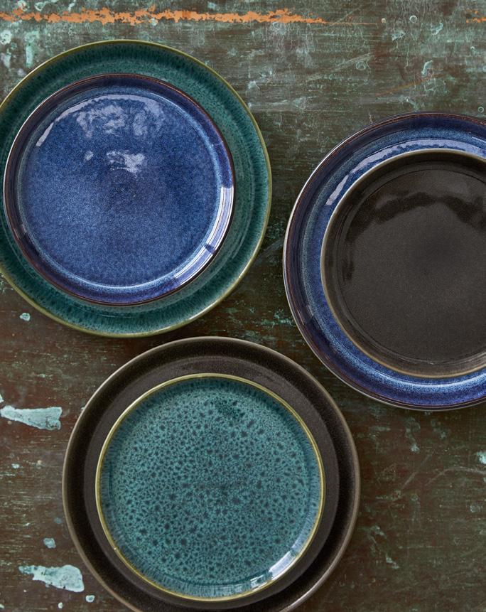 Dette stentøj er fremstillet med en smuk, reaktiv glasur, som giver produkterne ekstra glød og gør hvert eksemplar unikt. Der vil være synlige ridser og skæremærker – det er ikke en fejl. Stentøjet tåler maskinopvask, mikroovn og ovn op til 220 grader.