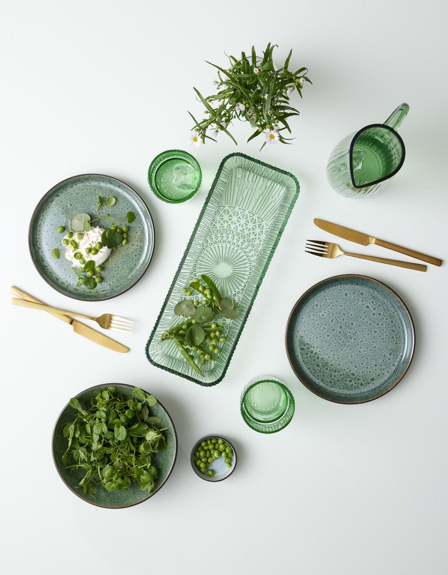 Die hübschen, grünen Teller mit der tollen glänzenden Glasur sind eine Augenweide und sprechen den Geschmackssinn an – und sie setzen Ihre Mahlzeiten perfekt in Szene. Spielen Sie mit den Farbtönen und mixen Sie verschiedene Farben – im Salat genauso wie in der Tischdekoration.