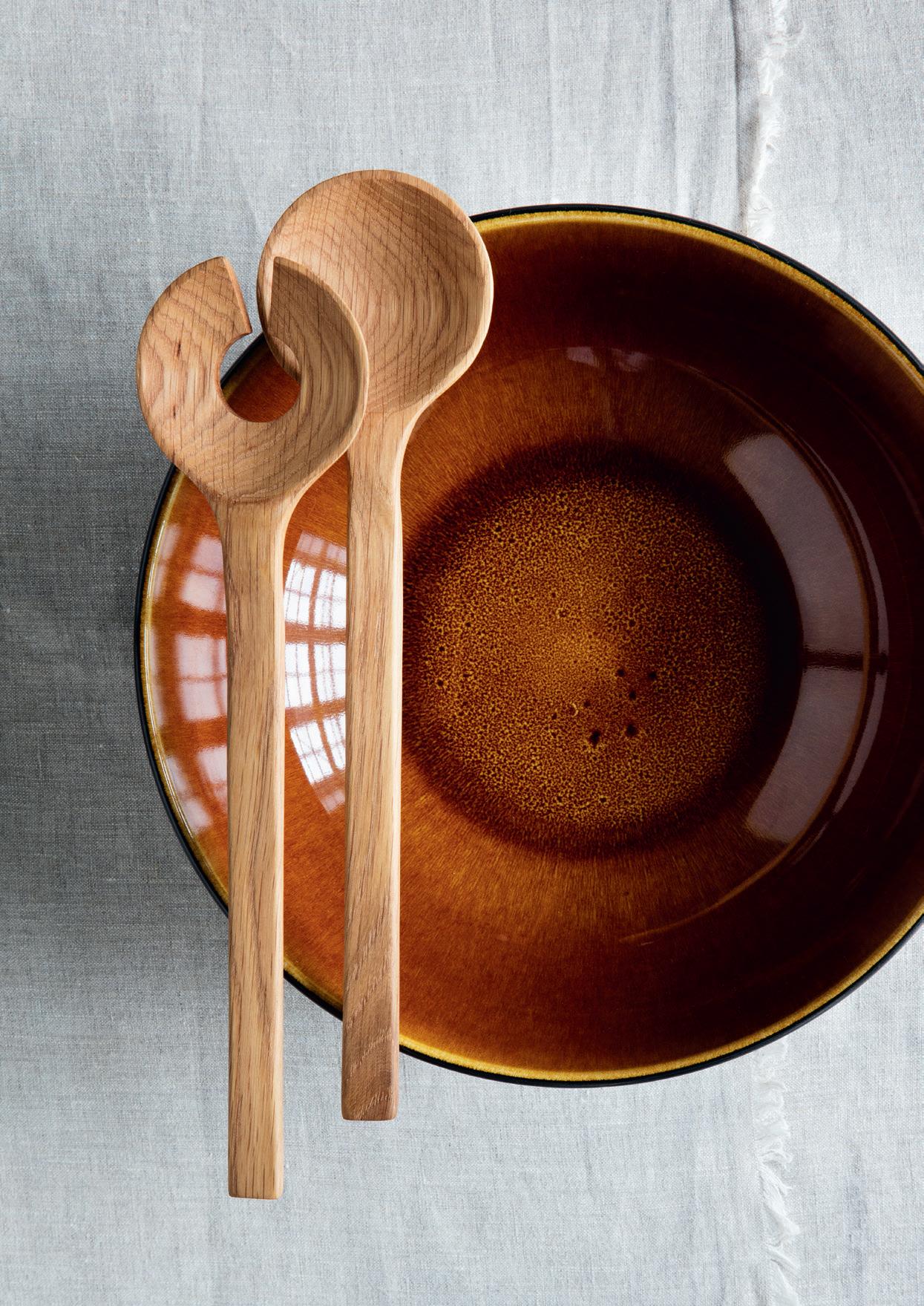 Gå efter det nordiske naturlook og kombiner smukt og rustikt egetræ med de andre flotte materialer i BITZ-sortimentet. Salatbestikket fås i to størrelser, og de smukke trælåg passer til alle stentøjsskåle med samme diameter.