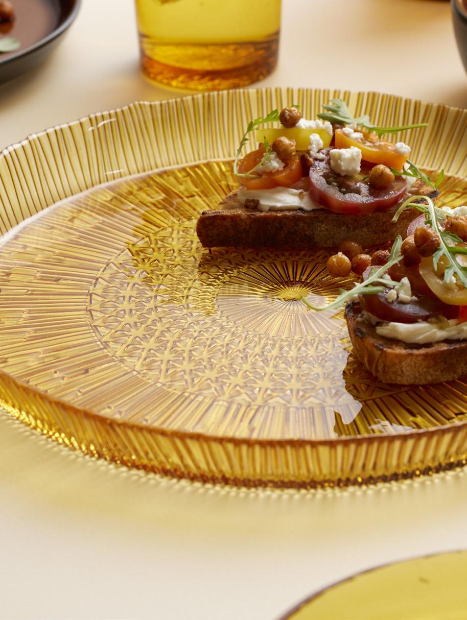GLASS PLATE AMBER / GLASS DIA 25 CM