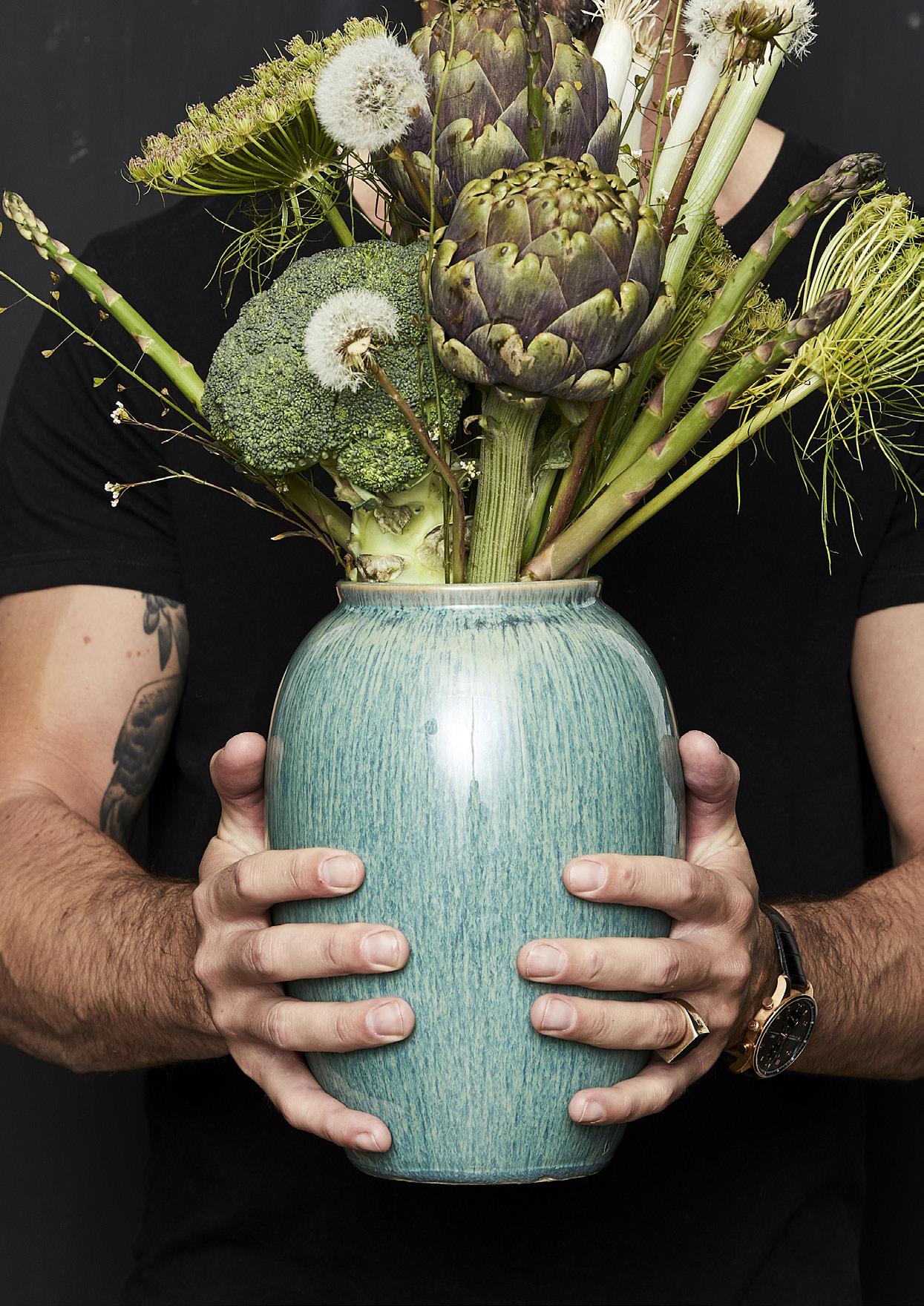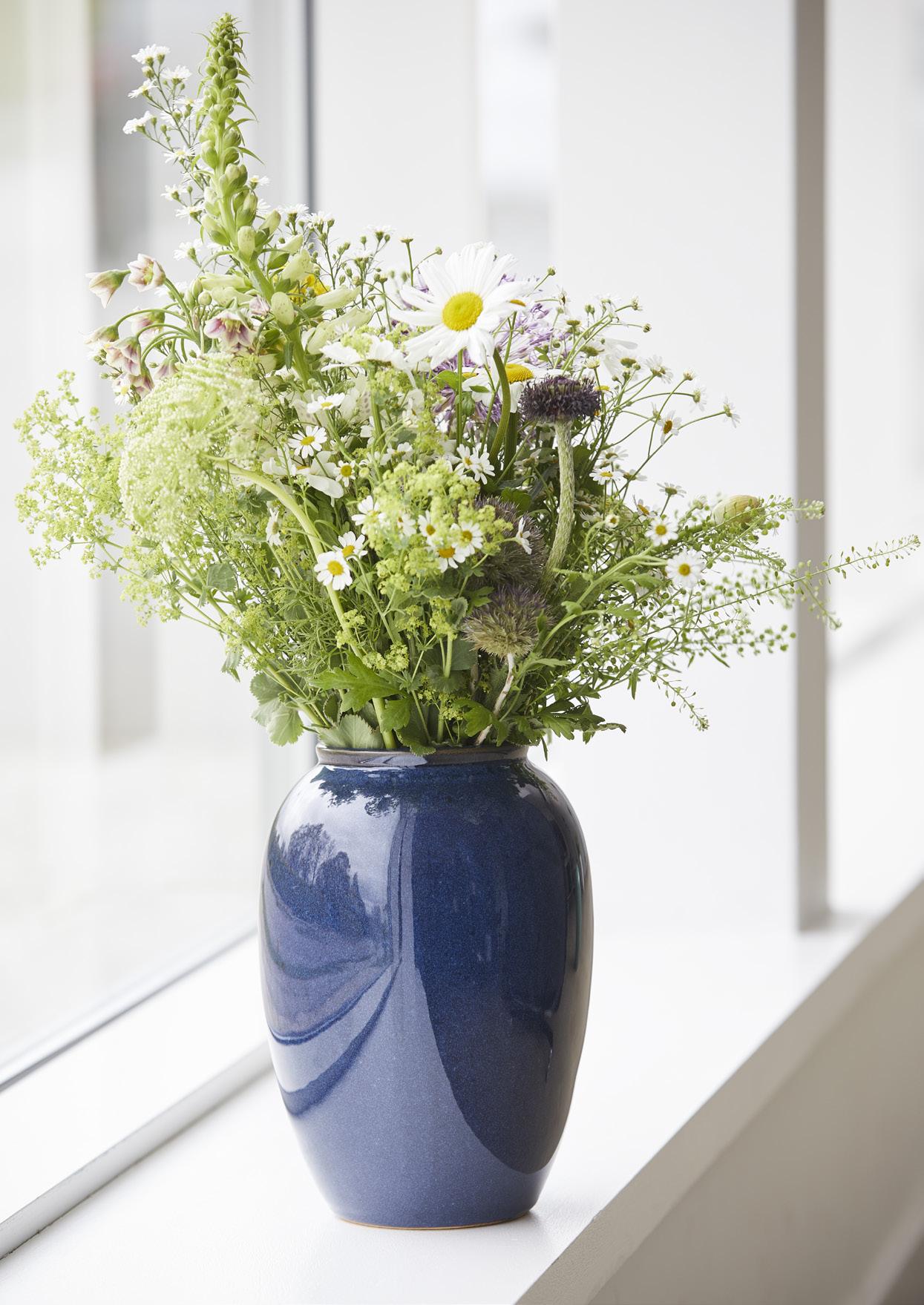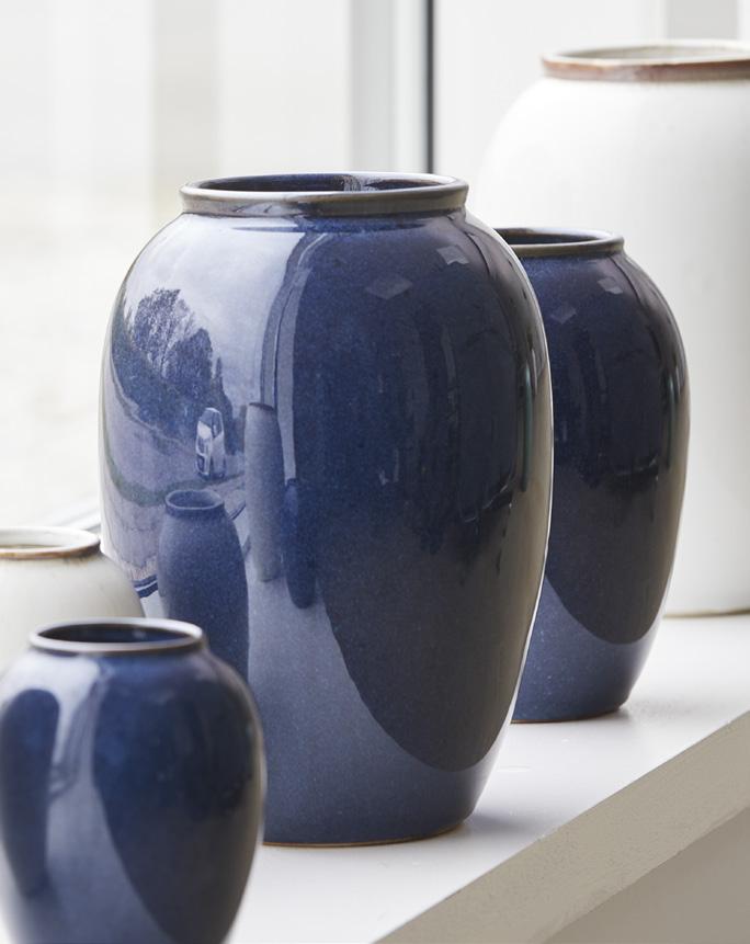 Til enkle blomster fra haven, vilde markblomster – eller en buket dekorative grøntsager. Glasurens smukke farver trækker blikket til sig og understreger BITZ-vasens klassiske form.