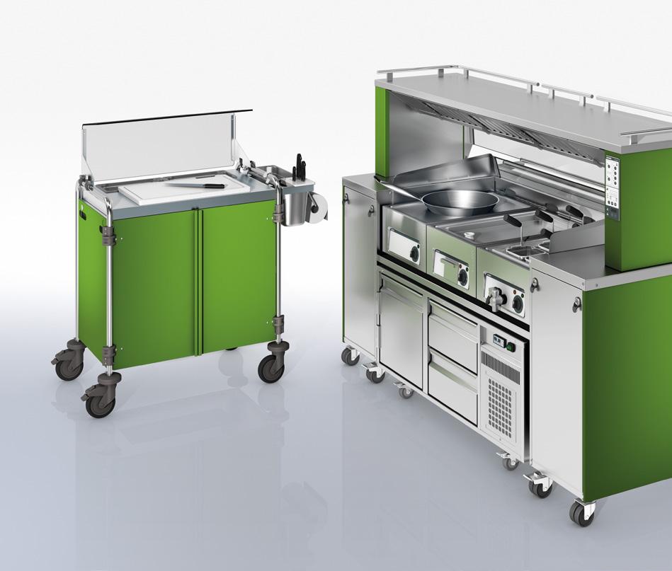 Die können noch mehr: Mobile Servierwagen als Besteckausgabe, Abräumstation oder Arbeitsplatte.