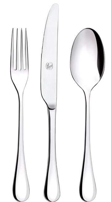 In case of wash with dishwasher use a washing program at temperature not higher than 60°C. Take knives separated from other cutlery (forks and spoons) and other stainless steel kitchenware. Do not use to wash any synthetic detergents at chlorine and with phosphates in % more than 10%, o x ygen base or similar detergents bleaching. Remove and dry meticulously all cutlery after the washing with a soft cloth, even if the dishwasher has a cycle of automatic drying (this is to remove to surface of cutlery any limestone stains). Do not leave cutlery in the humidity of dishwater but dry and put them in a dry room. You could use cutlery dryer polisher machines with corncob powder. Do not use ceramics or similar and scrupulously avoid any abrasive liquid.