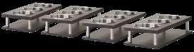 Le cycle de production de fourchettes et cuillères commence par l’opération de découpage (1). Afin de diminuer l’épaisseur du cuilleron par rapport au manche, on procède ensuite au laminage (2), et on continue avec l’ébarbage (3), pour donner la forme du cuilleron ou des dents au couvert laminé. Finalement, on passe au calibrage (4), au cours duquel on donne la forme et les décorations nécessaires. Pour l’usinage des couteau x monobloc forgés on commence par le découpage du rond en un tronçon (1), qui est successivement calibré à chaud (2), de façon à lui donner une première forme. On continue avec le découpage du manche (3) et avec l’étirement de la lame (4) ; par la suite, on réalise le découpage de la lame (5), de façon à lui donner sa forme réelle. À ce moment-là, il ne reste plus qu’à définir la dentelure sur la lame (6) et achever le couteau avec les normales opérations de nettoyage. Les phases d’usinage des couteau x à manche creu x forgés commencent par le découpage des plaquettes (1). Les deu x plaquettes qui constitueront le manche creu x sont calibrées à froid (2), pour leur donner la conve x ité et les décorations; ensuite, elles sont accouplées et soudées (3) : voici le manche du couteau. Finalement, à travers un composant autobloquant, la lame, produite avec les mêmes techniques que les couteau x monobloc forgés, est assemblée et soudée au manche (4).
