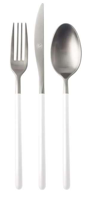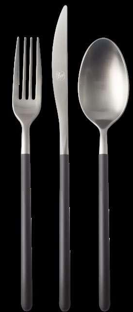 Nace de una idea del Maestro que conjuga design y funcionalidad con un elemento nuevo: cada cubierto tiene un empleo específico. La cuchara risotto para saborear finalmente también el condimento. La cuchara y el tenedor espaguetis, pareja moderna y actual. Las pinzas personales que permiten saborear entrantes y frituras sin ensartarlos. La pareja carne con el famoso tenedor de dos dientes y el cuchillo bistec rigurosamente tipo “bisturí”, para no deshilachar la carne. El cuchillo para pescado ambidiestro, concebido para salir al encuentro de las e x igencias de un zurdo y separar con un solo toque el pescado. La filosofía que ha inspirado el design de la serie es la de un chopstick. Los mangos y espigas son de hecho citaciones del famoso objeto japonés, mientras que las tazas y los dientes conservan en sus líneas toda la sabia tradición gastronómica italiana.