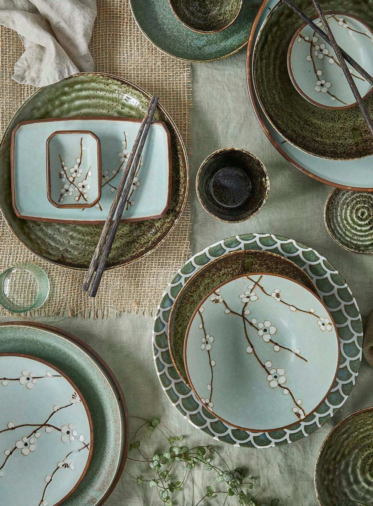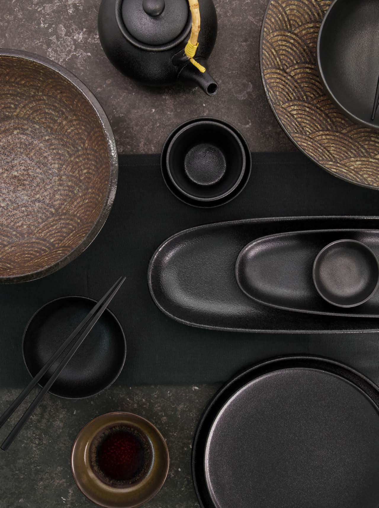Even after 25 years Green Soshun still feels like the newest tableware trend. This is a photographers’ favourite. Loved for its traditional cherry blossom print and soft-green emerald appearance, Green Soshun is the most wanted for culinary adverts and commercials. And it looks great with any dish you serve. So add a little bit of spring to your menu with this lively and fashionable set.