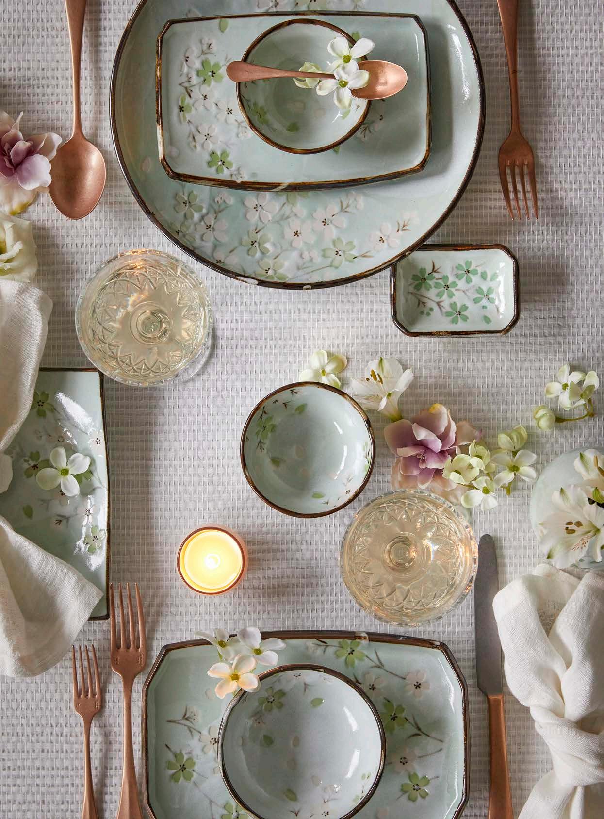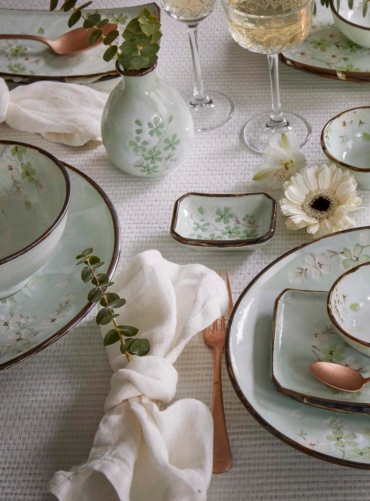 Bring your tabletop to life and amaze your guests with the beautifully atmospheric Green Cosmos collection. Richly decorated with Japanese blossoms on a pale pastel shade of spring green, this beautiful collection of bowls, plates and mugs will enhance the ambiance of your kitchen.