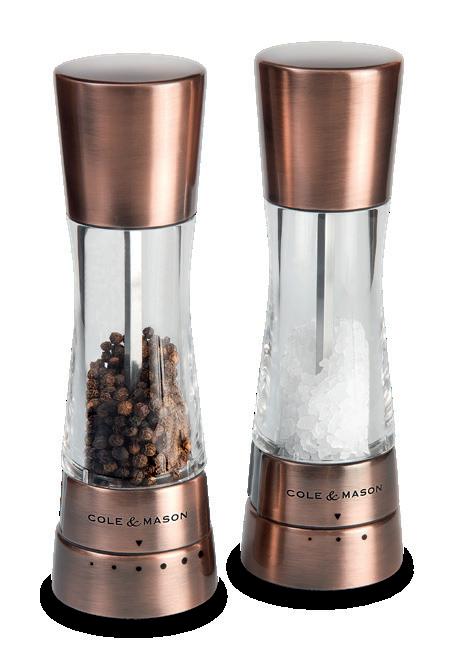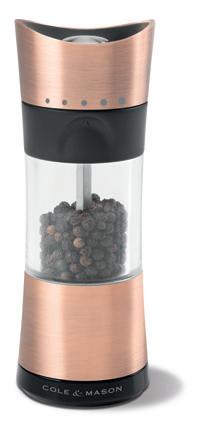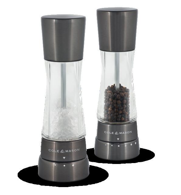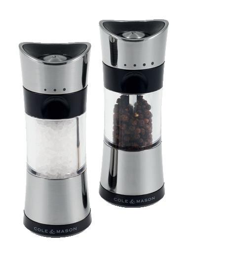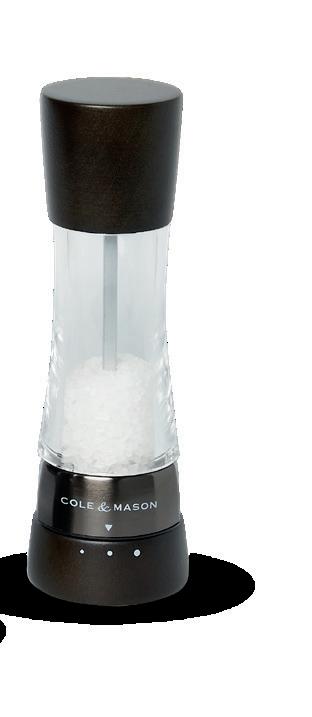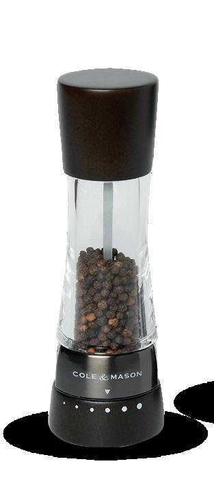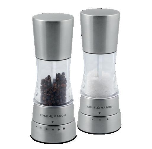 Choose from 6 pre-set grind levels for pepper and 3 for salt to give precise adjustment of the grind from fine to coarse.
