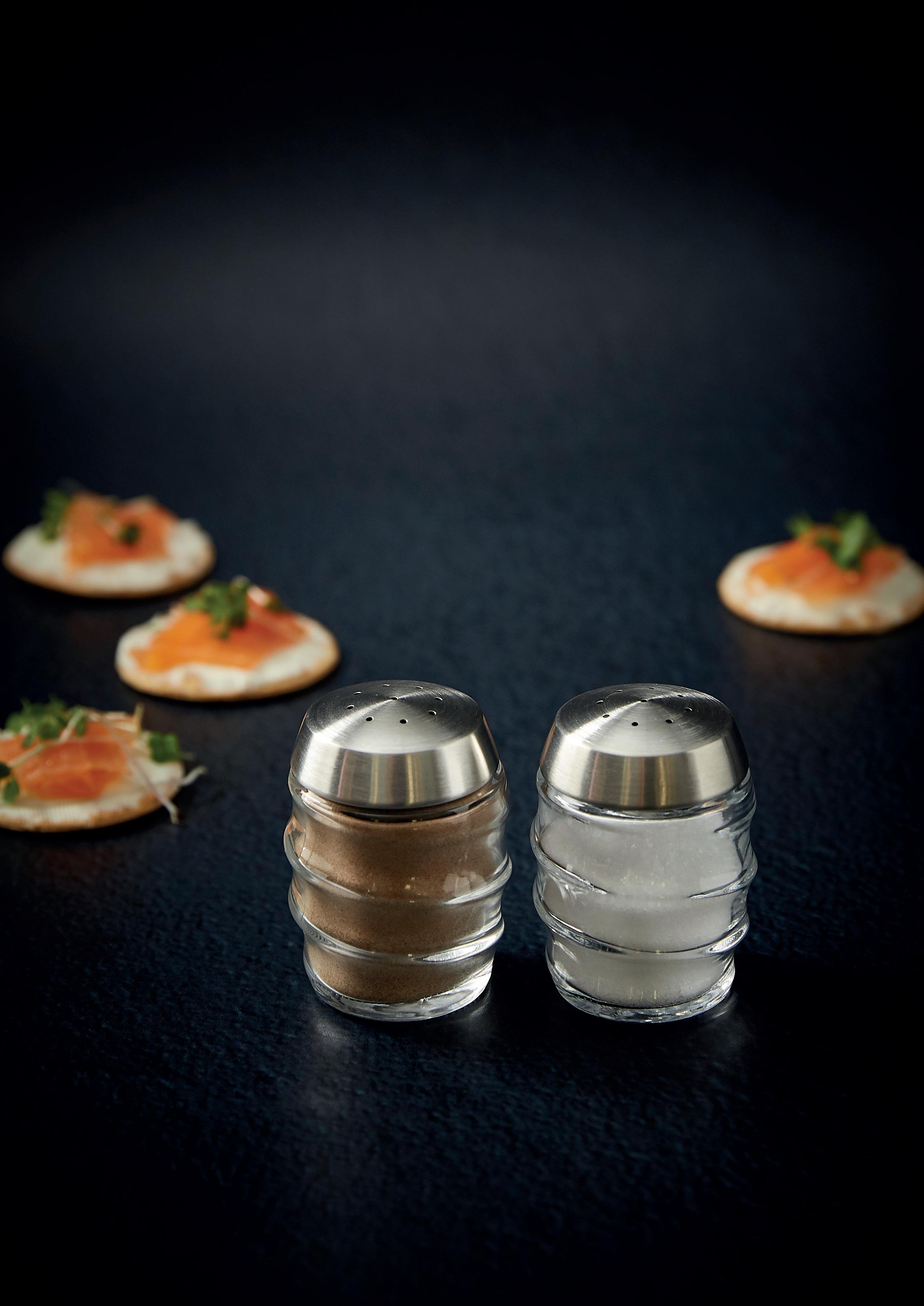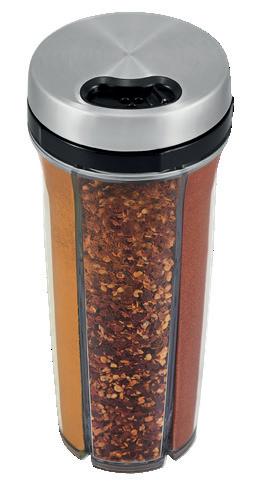FR: Couvercles chromés avec fermeture hermétique et deux ouvertures pour saupoudrer ou verser