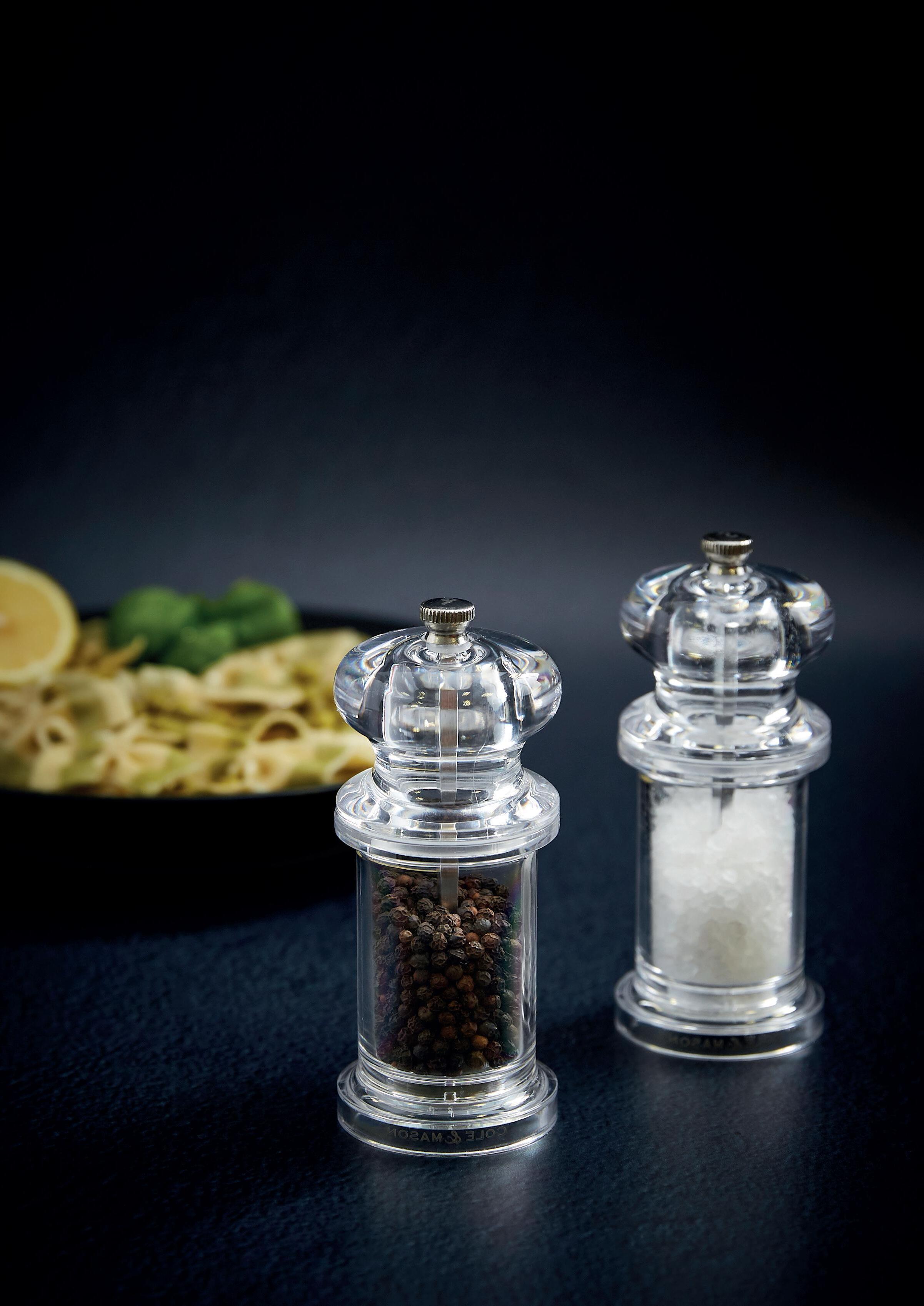 Notre gamme de moulins de qualité supérieure offre au cuisinier un contrôle total avec six moutures préréglées pour le poivre et trois moutures préréglées pour le sel. Ils permettent un réglage précis de la mouture, de fine à grossière. Sélectionnez une mouture fine pour relever efficacement la saveur de vos sauces et soupes, et passez sans effort à une texture plus grossière pour donner un goût subtil mais plus long en bouche, le choix parfait pour les salades ou les steaks.