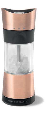 Our premium range of grind select mills gives the cook complete control with 6 pre-set grind levels for pepper and 3 pre-set grind levels for salt, to provide precise adjustment of the grind from fine to coarse. Select a fine grind for a big punch in sauces or soups or effortlessly switch to a more coarse grind for a more subtle but longer lasting taste, great for salads or steaks.