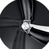 Präzisionseinstellung mit Mahlstufen von fein bis grob, 6 Stufen für Pfeffer 3 für Salz.