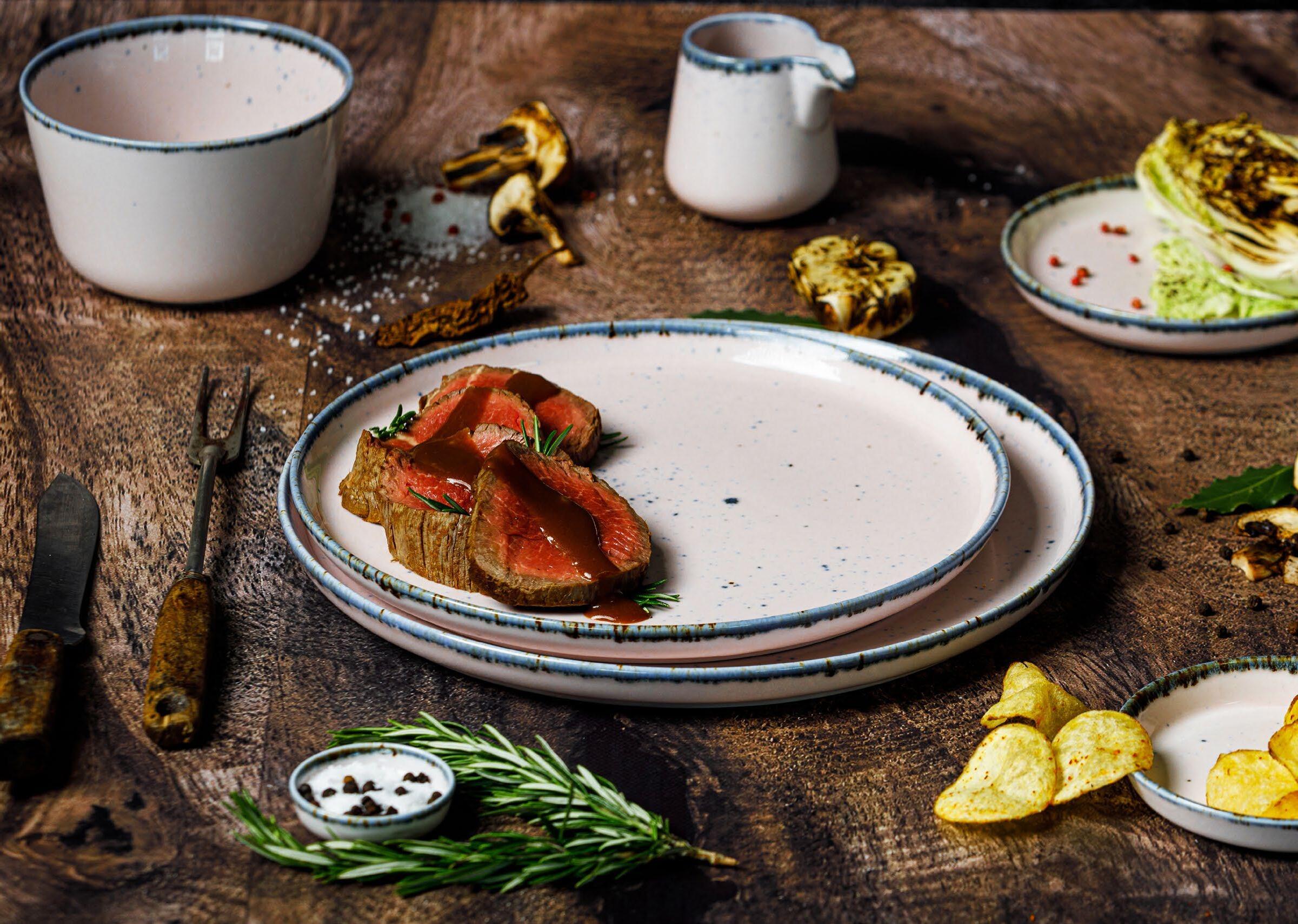 Born from the romance between white and black, Neutral symbolizes seriousness and strength. Its matt grey glaze allows you to create harmonious, balanced dishes with a personality of their own, which, connected to the reactive brown colour, discloses a cosy sensation. Allow yourself to be creative and use your imagination at platting, in order to surprise your guests.