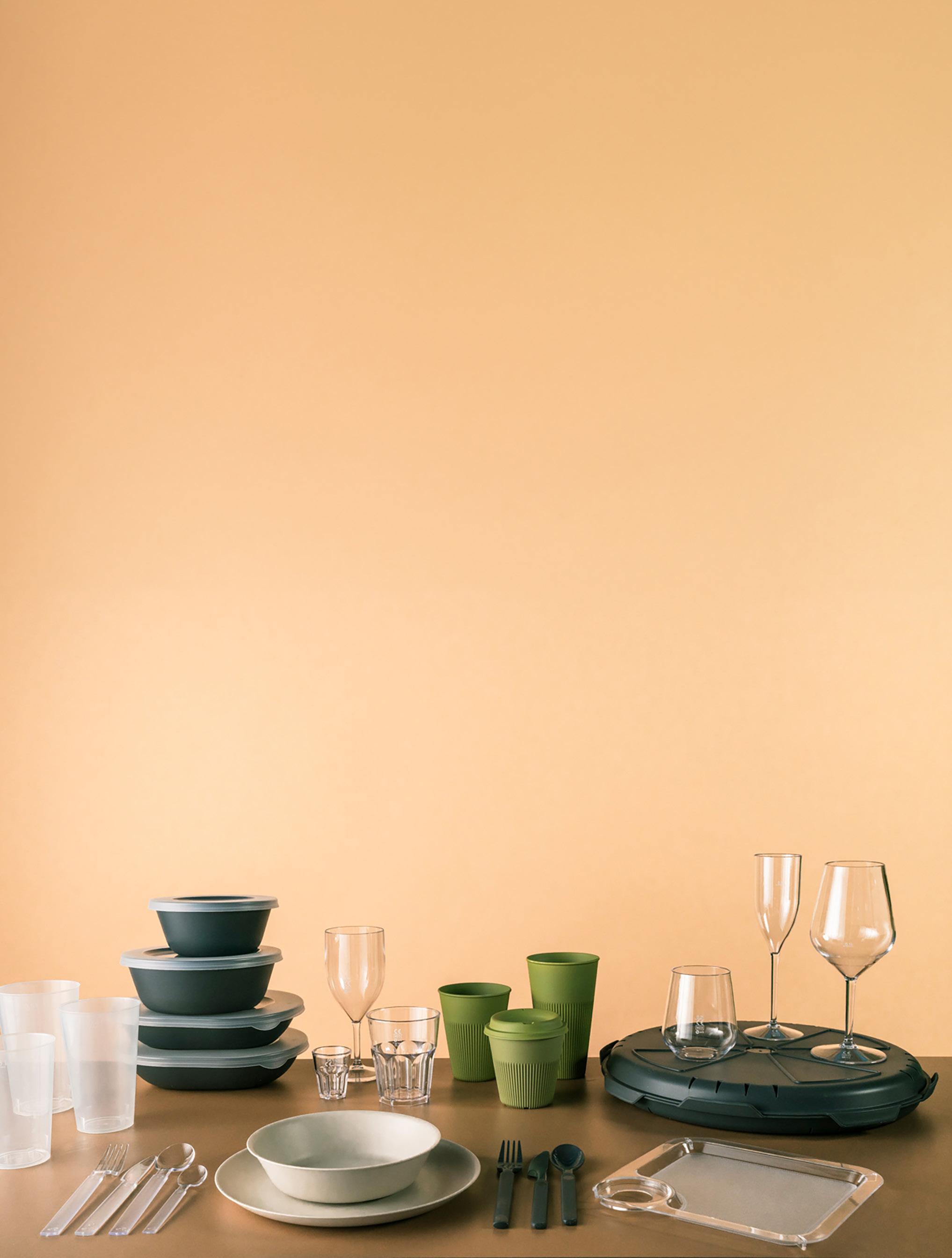 Das Sortiment der wiederverwendbaren ReDine Produkte hat ein reines und vielseitiges Design für jeden Anlass. Perfekt für eine Gruppenwanderung. Oder um wiederverwendbare Markenartikel in Ihrem Café – oder auf Ihrem Festival –anzubieten. Oder kombinieren Sie sie, um einen schönen Tisch für eine Gartenparty zu decken.