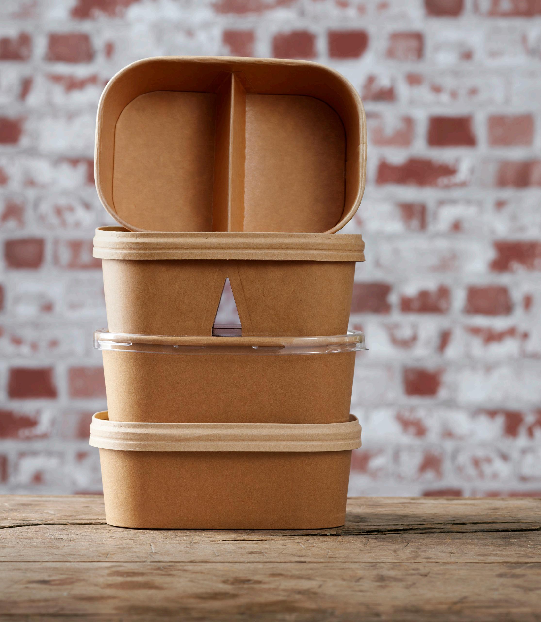 Für den verschüttungsfreien Transport flüssiger Speisen, bieten wir auslaufsichere Verpackungen an.