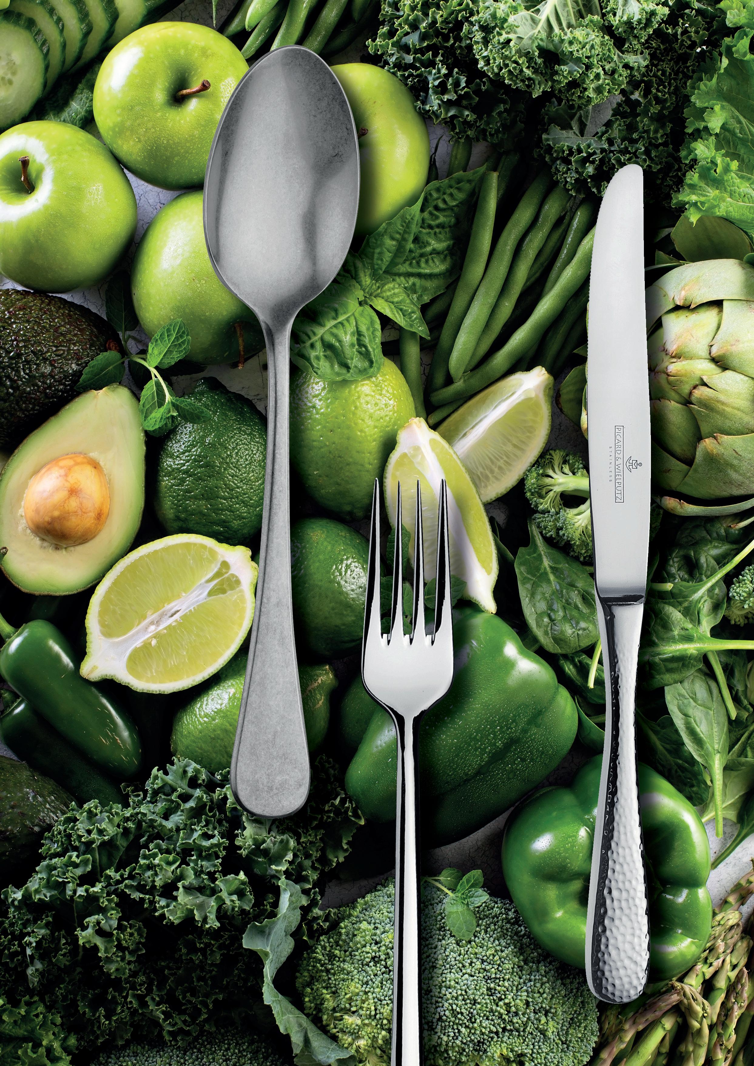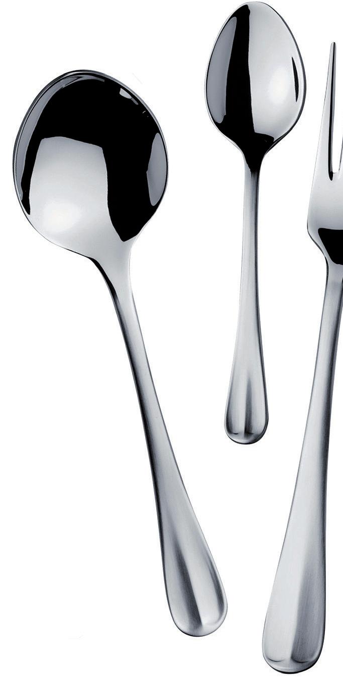 UnserChrom-Nickel-StahlwirdfürdieHerstellungdermeistenunsererBesteckmodelleverwendet.SeineLegierungaus18%Chromund10%oder8%Nickel verleihtihmeinesehrhoheKorrosionsbeständigkeit.Esermöglichteinenintensiven professionellenGebrauchundsehrvieleSpülgängeinderSpülmaschineundbehält dabeiseinmakellosesAussehen.Chrom-Nickel-Stahlistnichtmagnetisch.