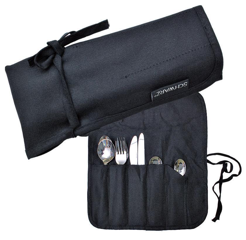 Etui individuel à couverts, tissu noir, 100% coton, avec 5 poches pour 5 à 10 couverts