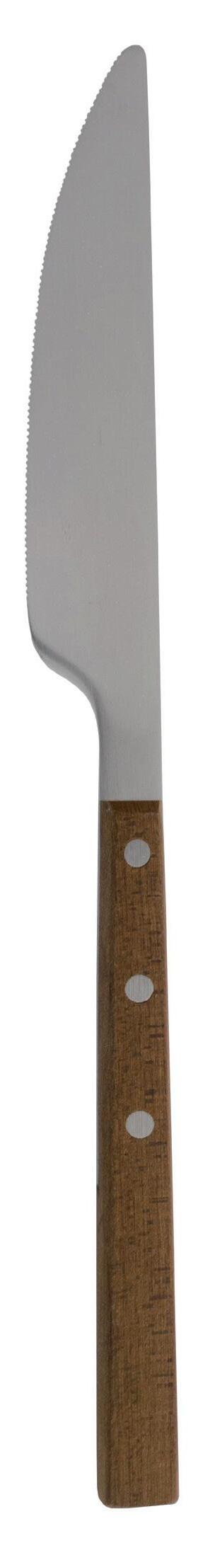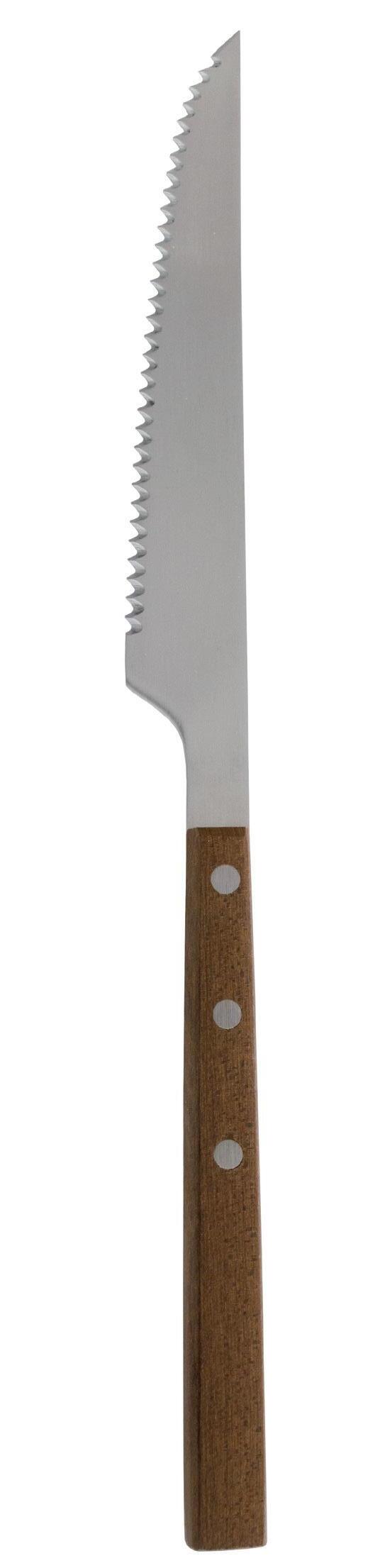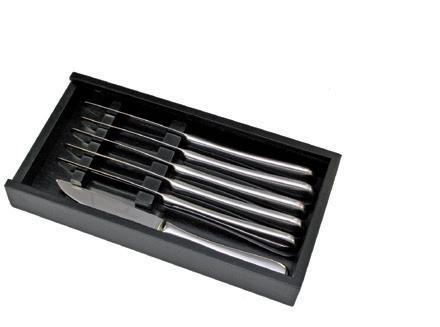 Ce sont des couteaux fabriqués en deux parties: une coque en acier au chrome-nickel 18/10 et une lame en acier au chrome 13/0. Leur manche ne s’oxydera pas. Seules les lames doivent être rapidement séchées pour garder leur aspect impeccable. Ils sont plus légers que les couteaux monoblocs.