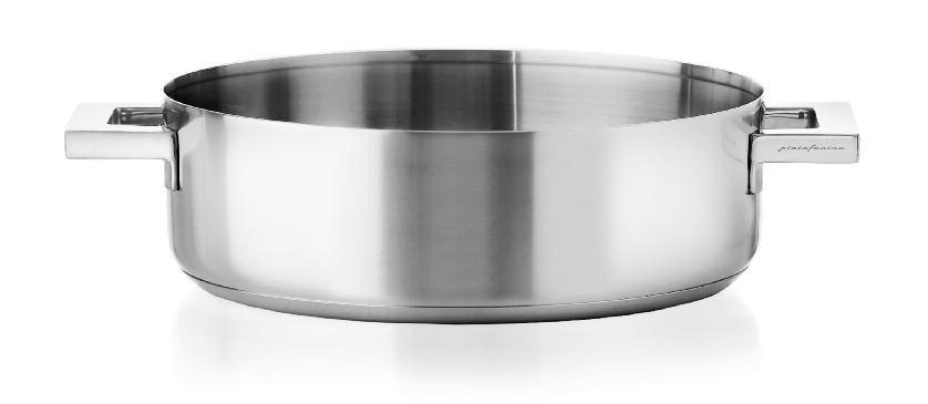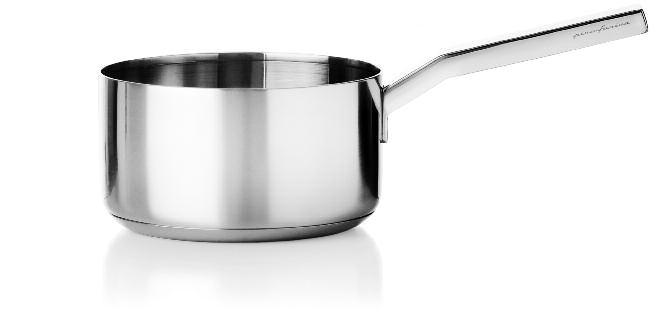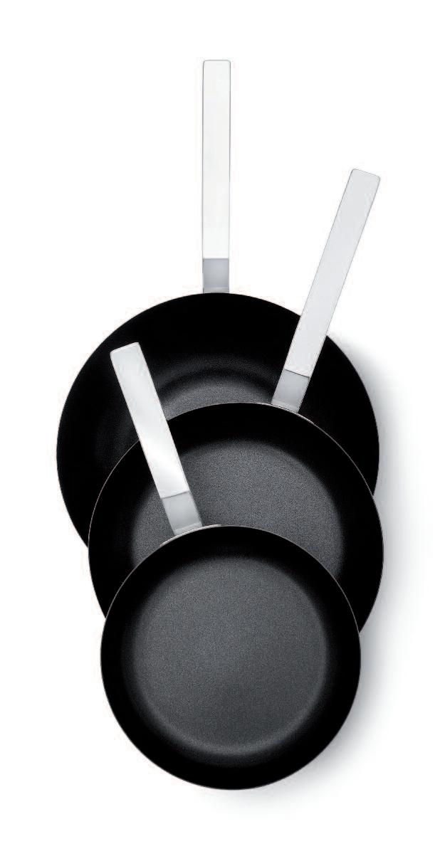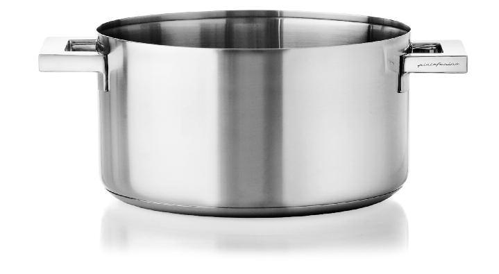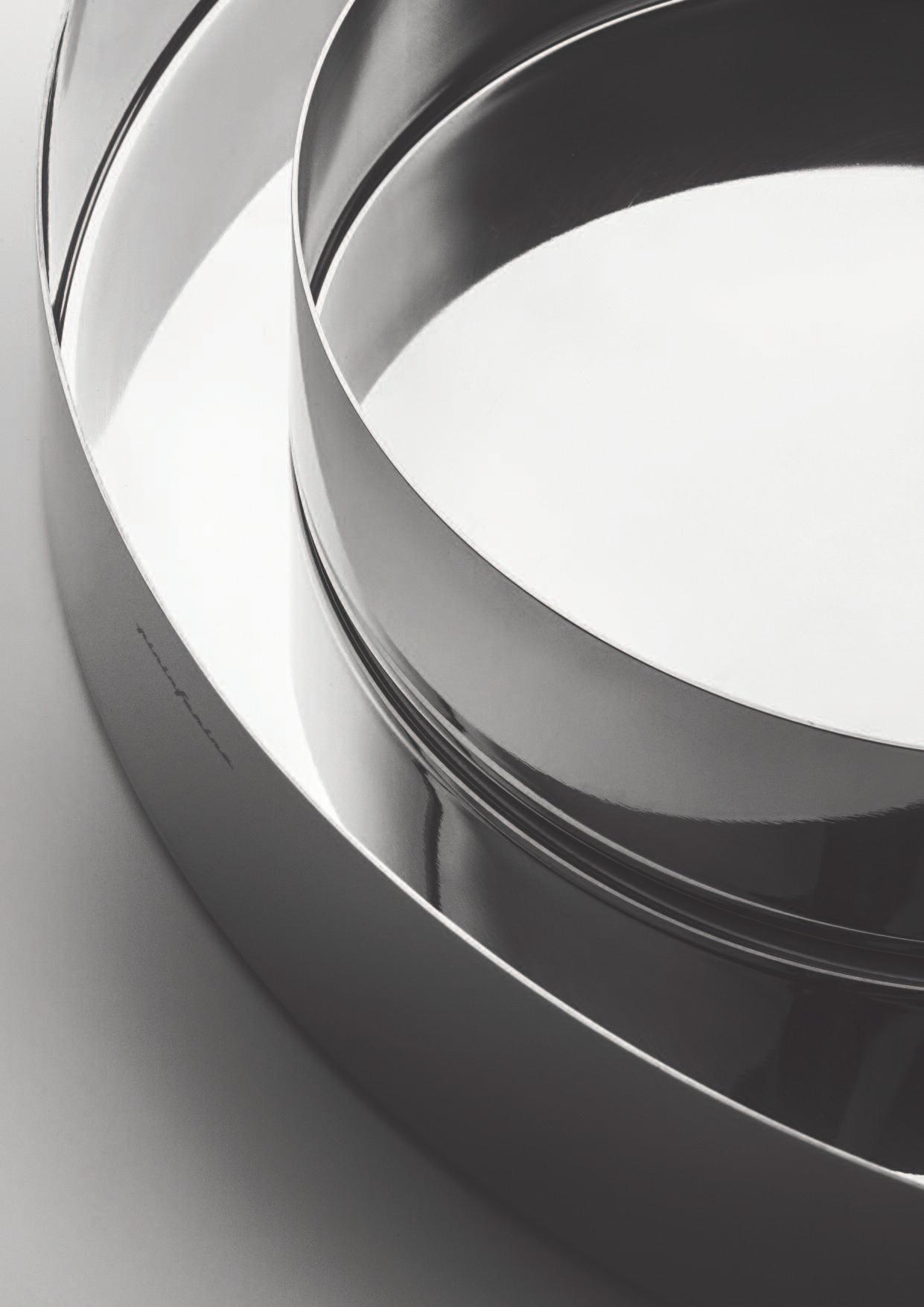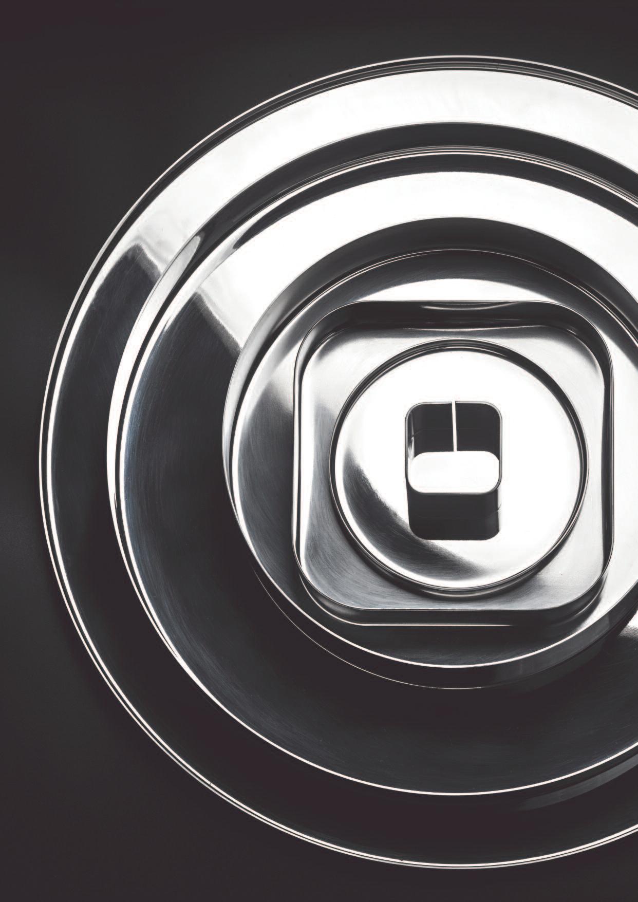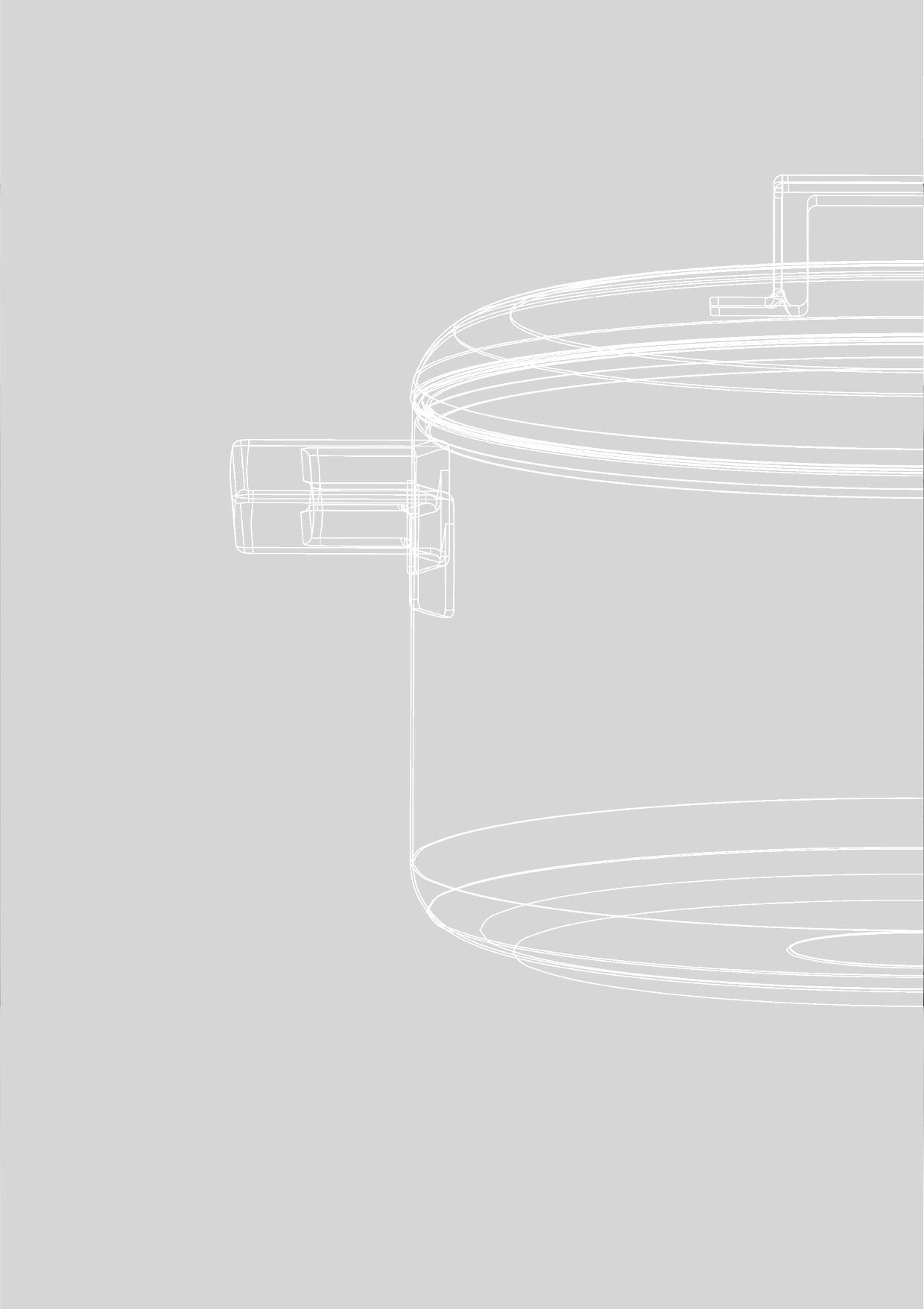 La purezza delle linee e le geometrie pulite danno forma a una collezione in cui stile e funzione raggiungono l’equilibrio perfetto. Il coperchio, dalle linee arrotondate, richiama la forma della pentola, garantendo una perfetta integrazione degli elementi, quasi a suggerire l’idea di un corpo unico ed estremamente compatto Il contrasto tra la finitura satinata esterna e quella lucida dei manici, conferisce alla collezione un aspetto inconfondibile
