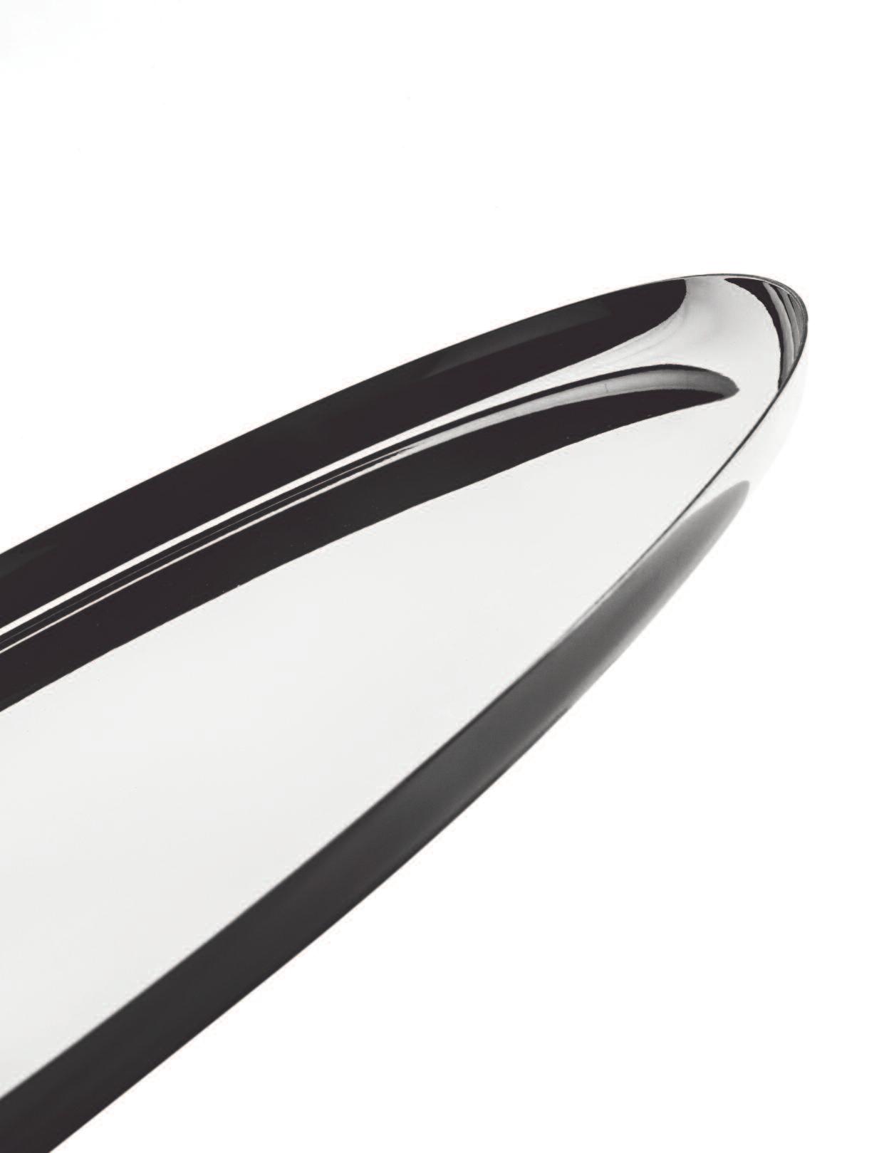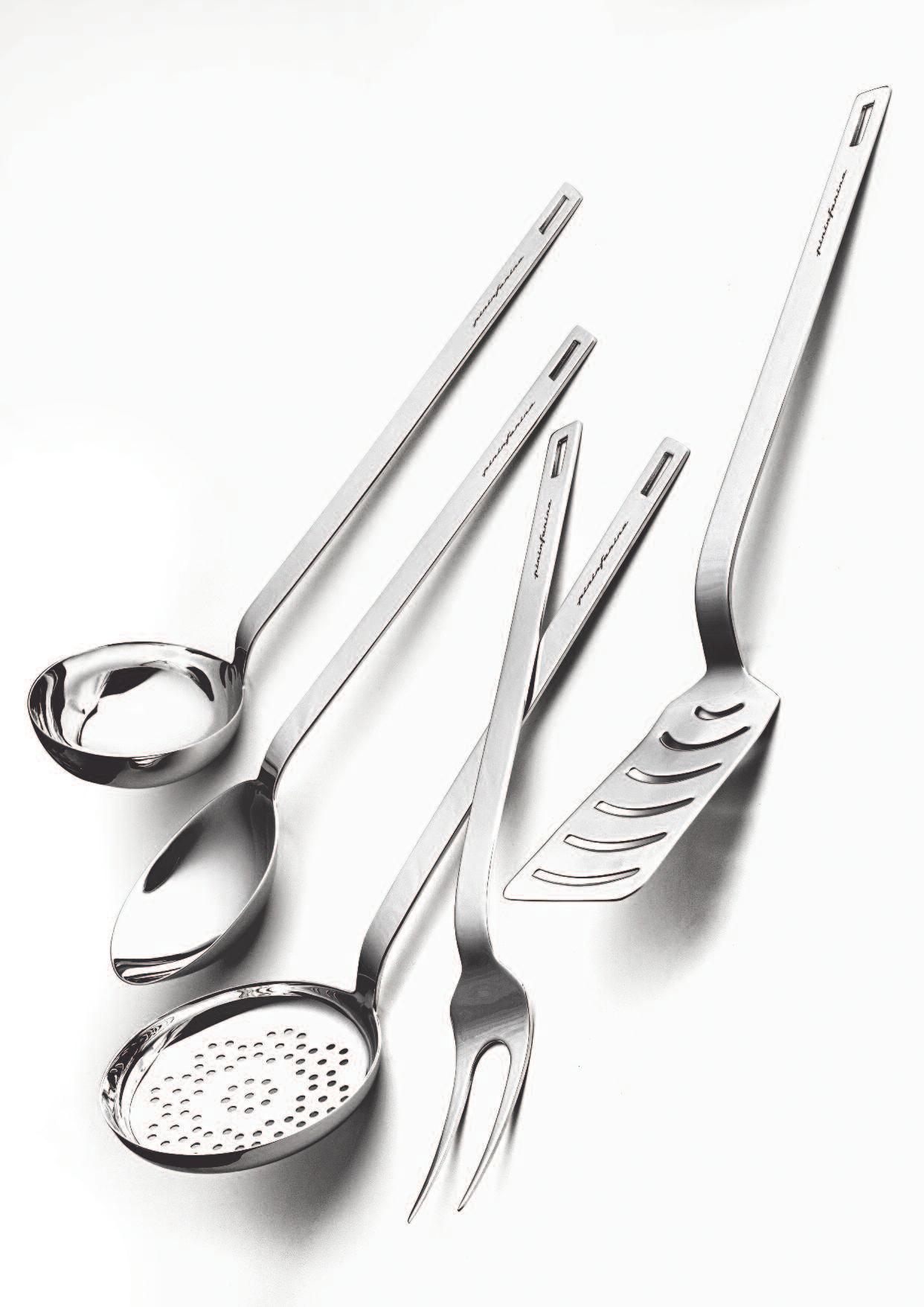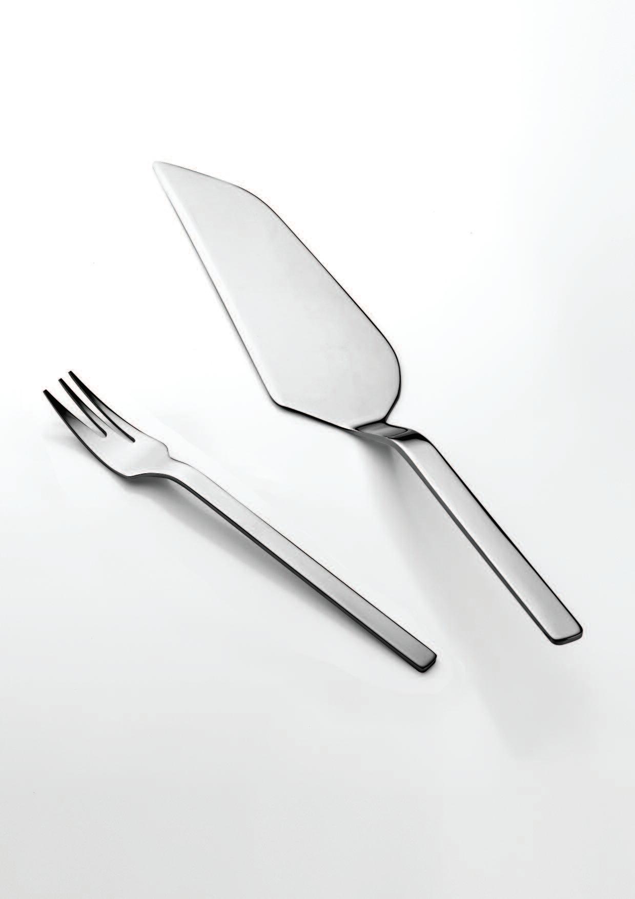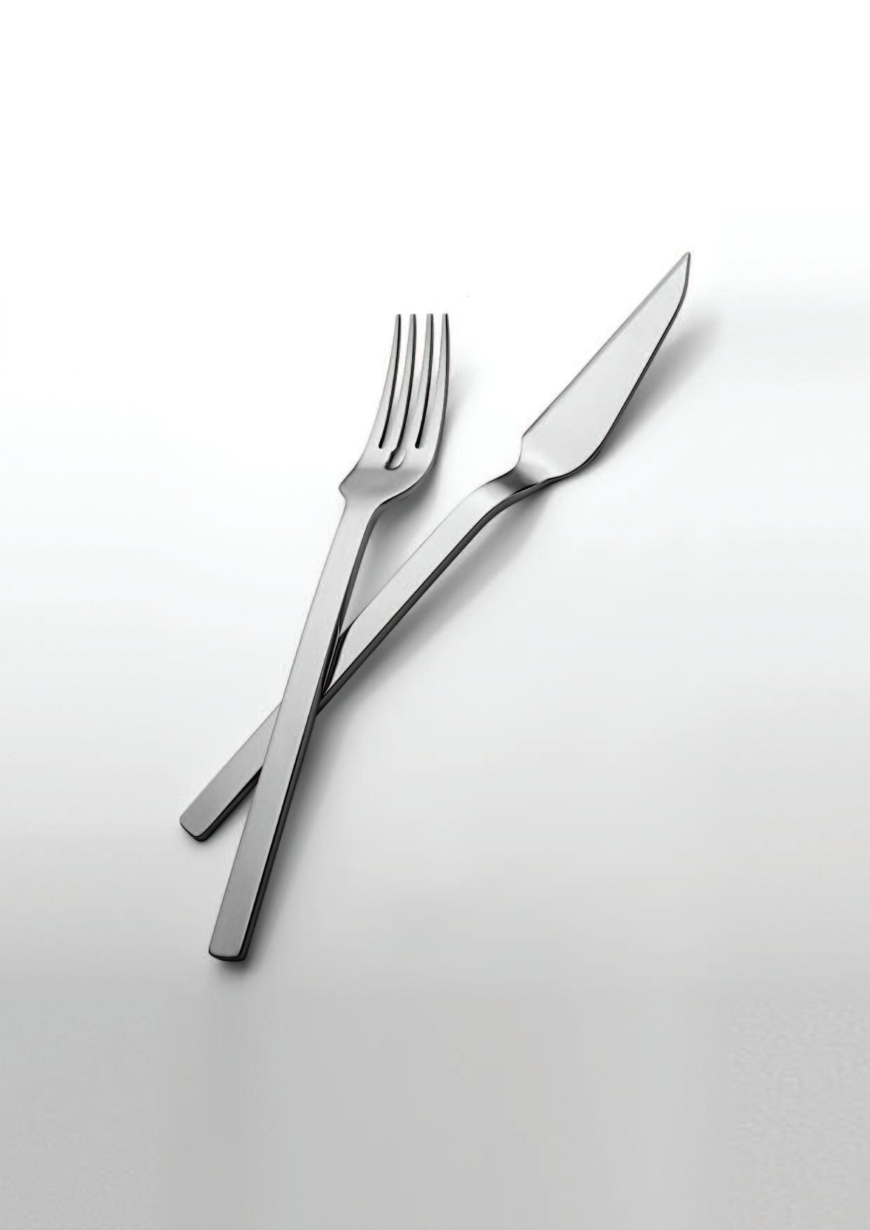 L'eleganza della posata si misura quando le forme del cucchiaio, la forchetta, il coltello ed il cucchiaino si fondono armoniosamente, nel rispetto delle dimensioni, creando la perfetta armonia sulla tavola, dove ogni pezzo vive e lavora insieme