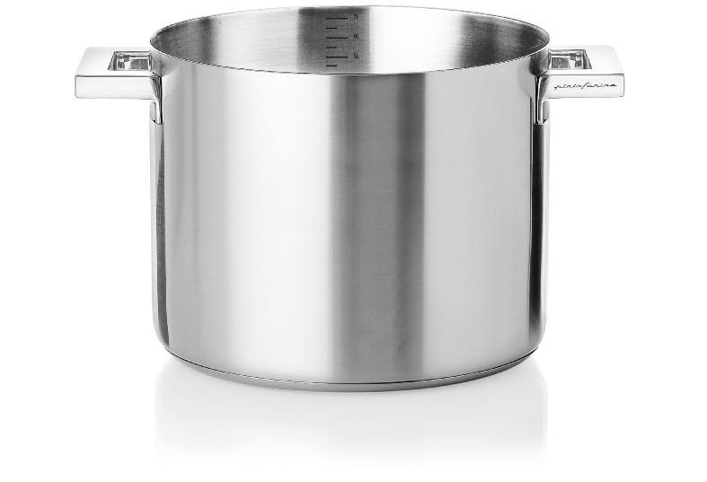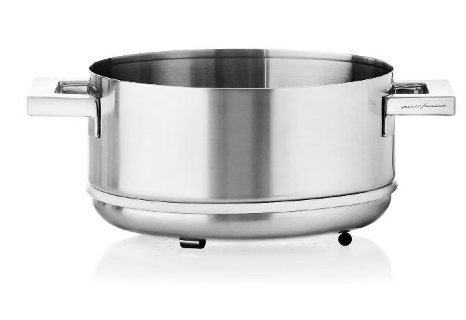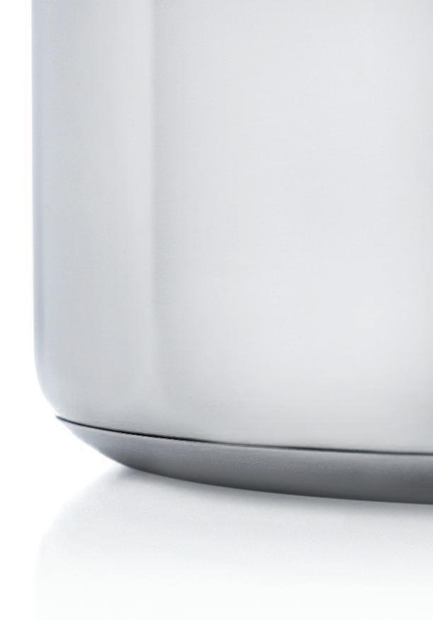 The pureness of the lines and the clean, essential geometries shape a collection in which function and style reach the perfect balance The lid –characterized by rounded lines – recalls the pot shape, guaranteeing a perfect integration of elements and conveying the idea of a single, extremely compact body The contrast between the shiny finish of the handles and the satin-finished exterior gives to the collection an unmistakable look