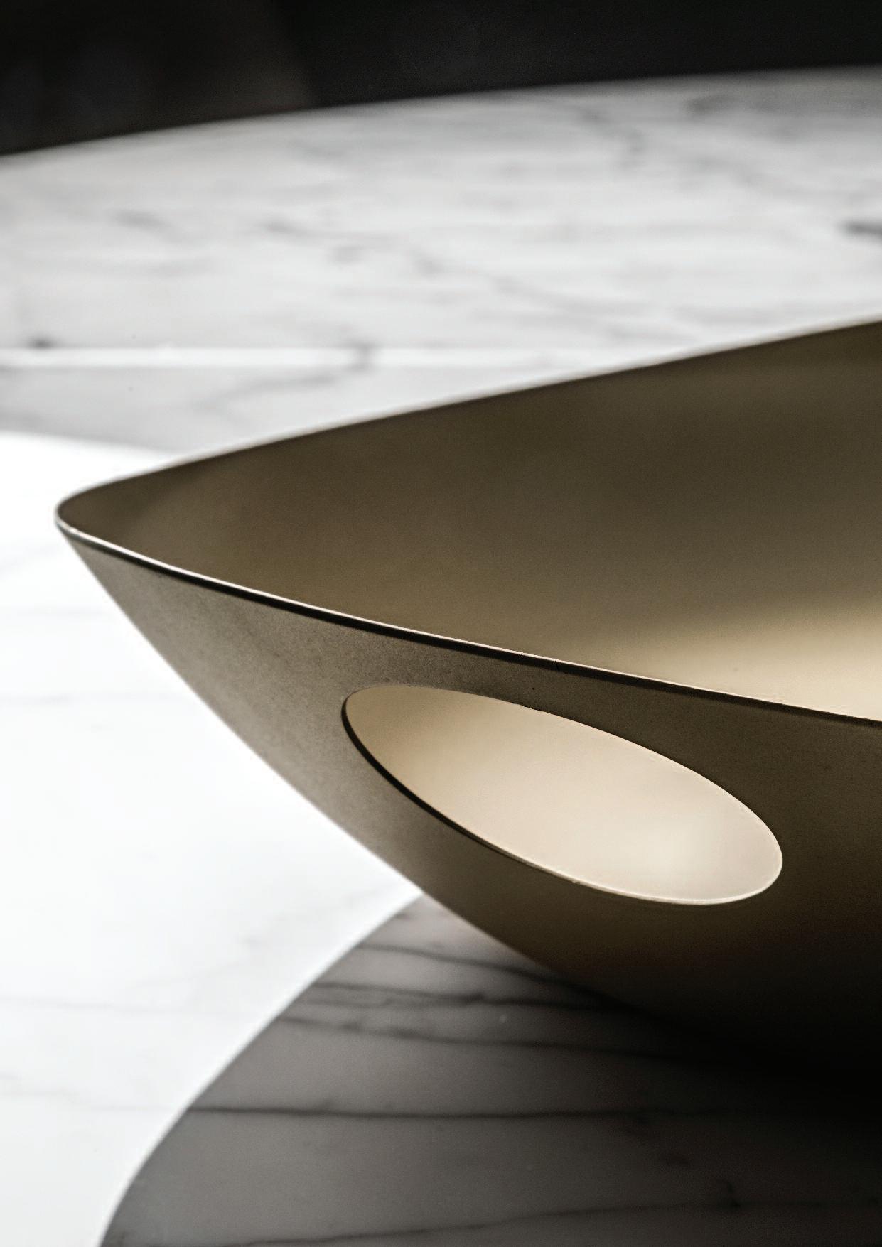 La forma asimmetrica e non convenzionale di questo modello è stata influenzata dall’osservazione dei comportamenti e delle routine legate al consumo del cibo a tavola Ho guardato i movimenti delle mani durante la disposizione del cibo sul piatto, la raccolta del boccone e l’accompagnamento alla bocca Ogni pezzo riflette individualmente questi movimenti, riferendosi al loro scopo e alle loro azioni; questo spiega il motivo per cui alcuni pezzi sono più asimmetrici di altri Oltretutto, l’asimmetria di questa linea avvantaggia la maneggevolezza della posata in modo da guidare la persona che la usa