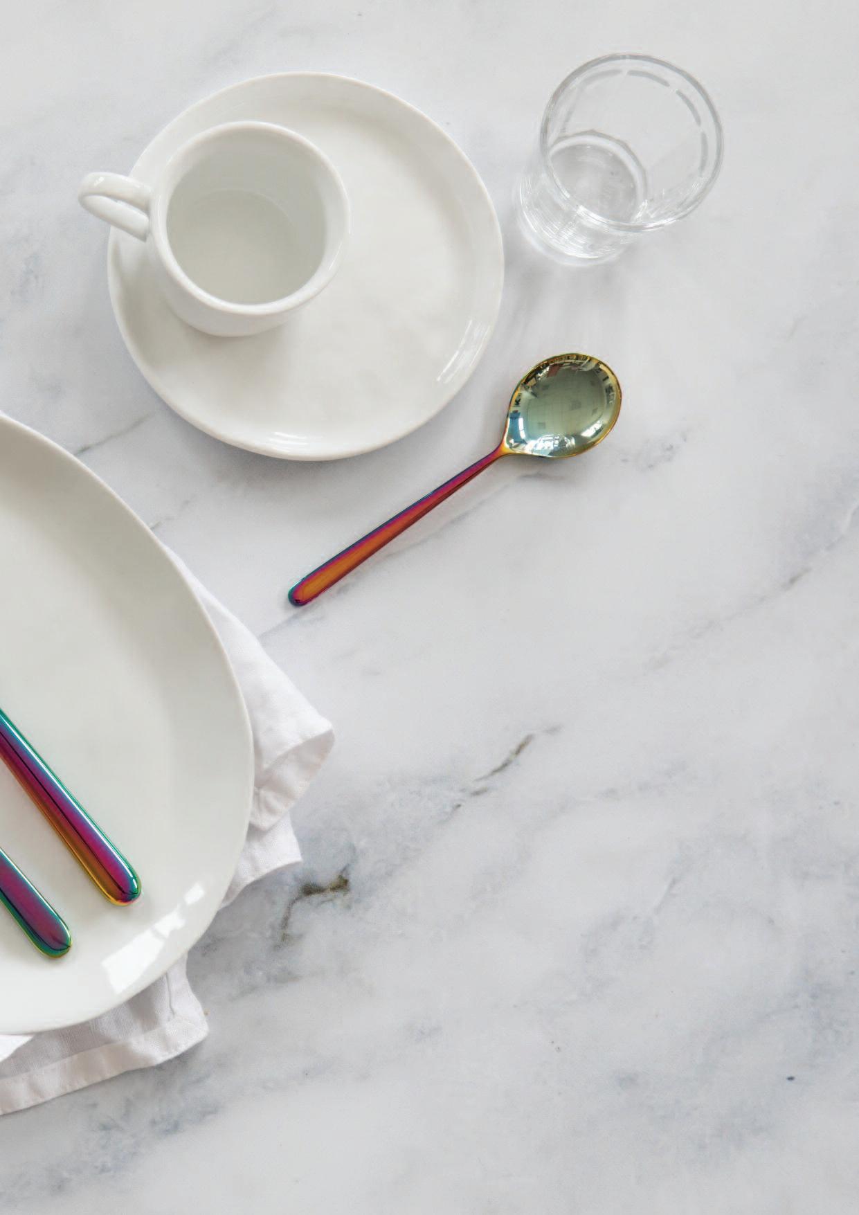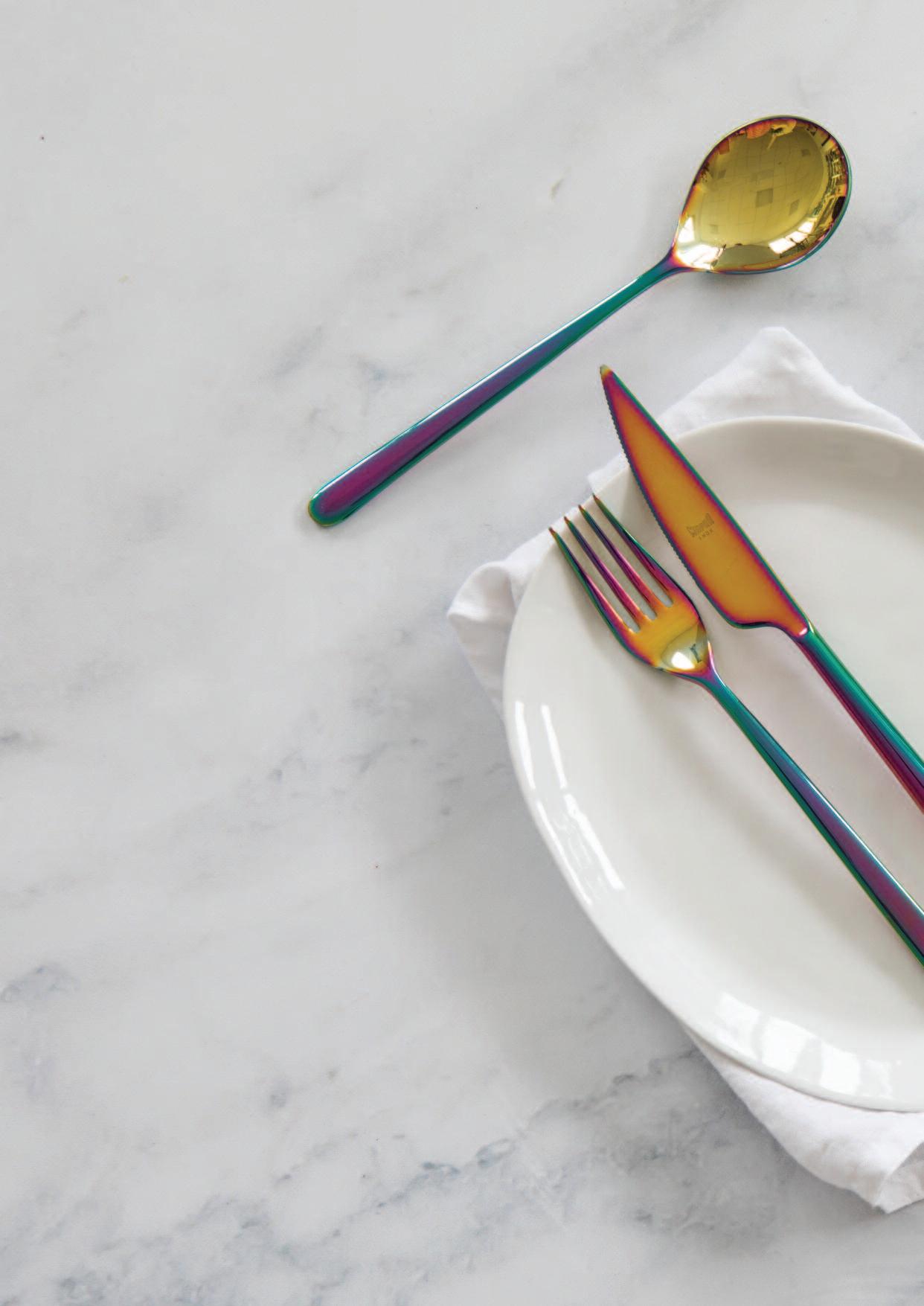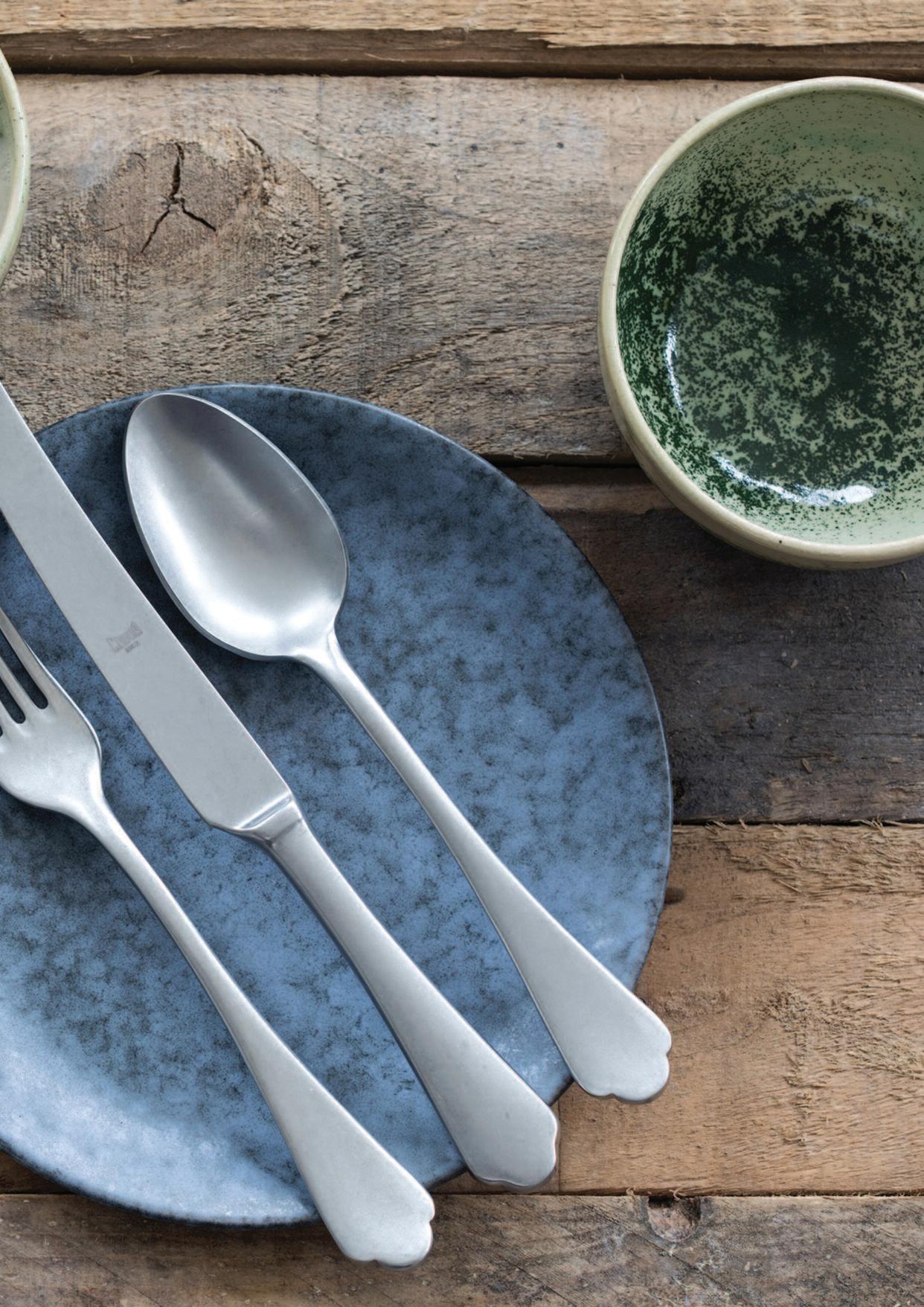 Le finiture ed i colori presenti nelle pagine seguenti, sono disponibili per tutti i modelli di posate e per tutto il vasellame