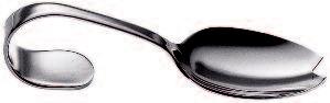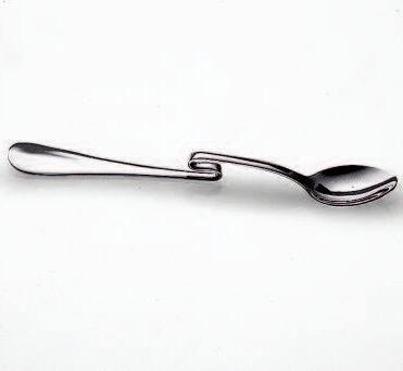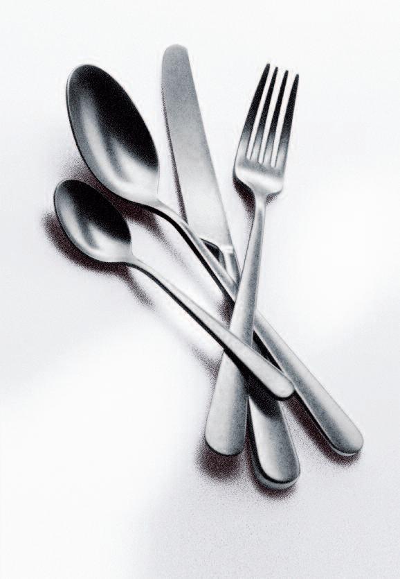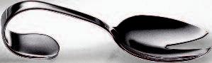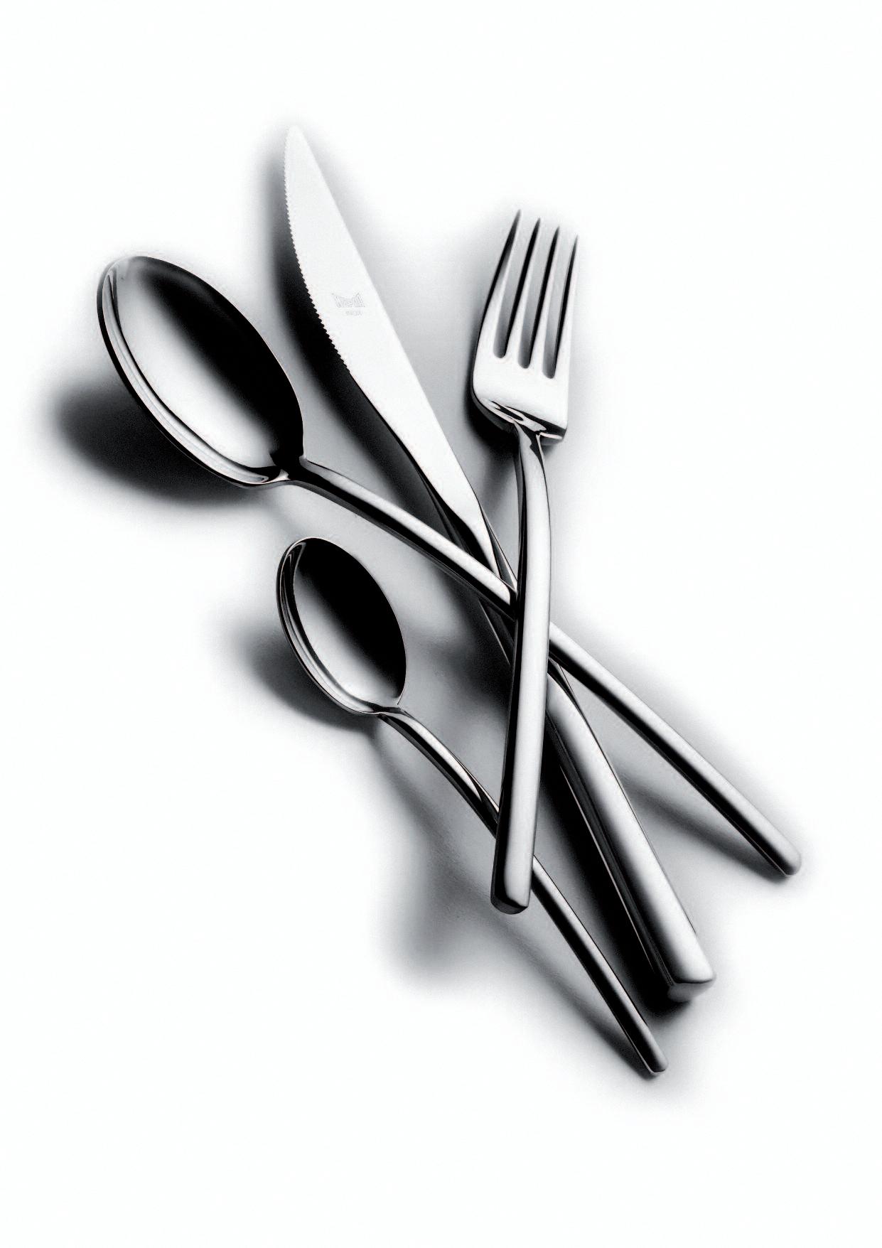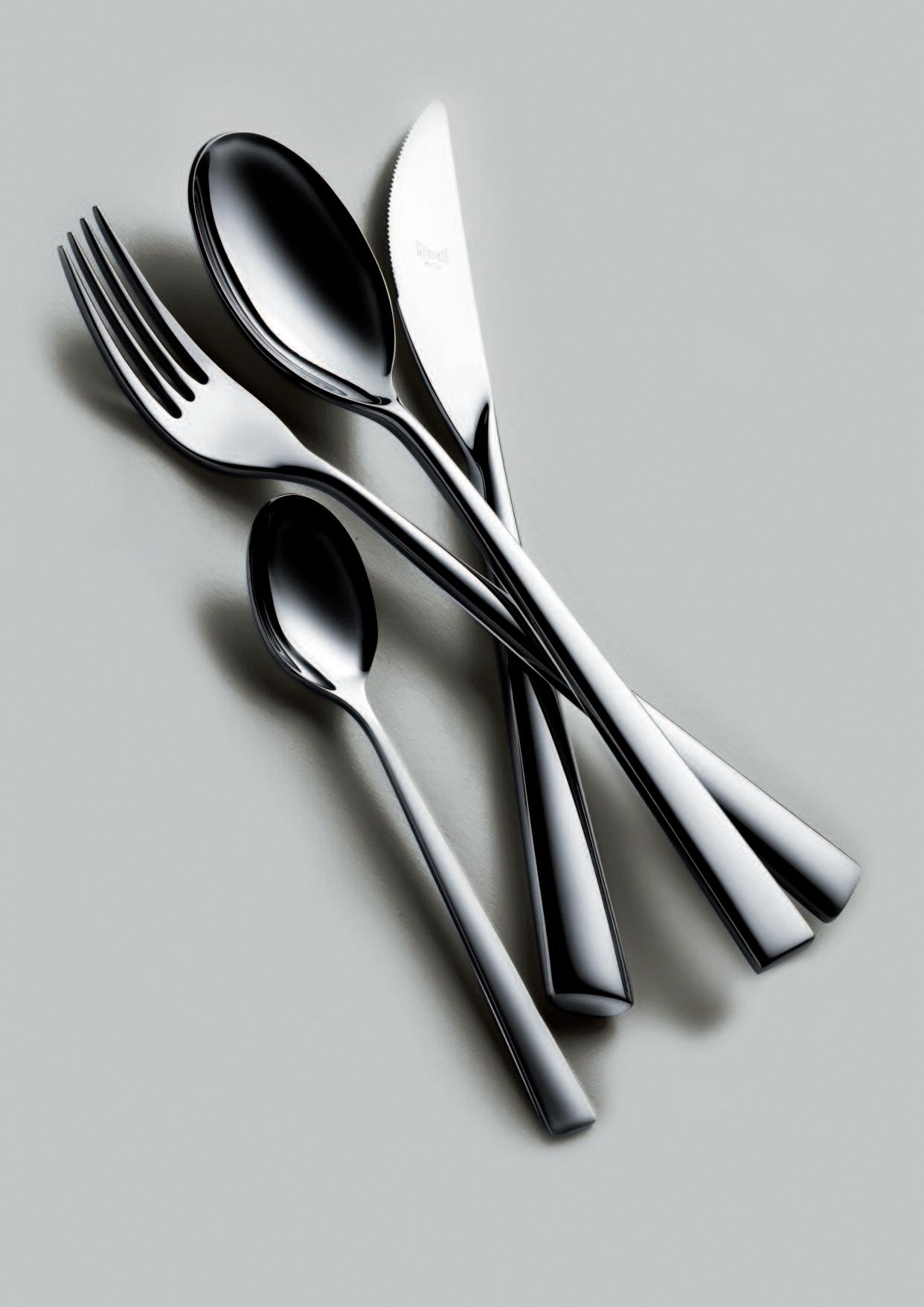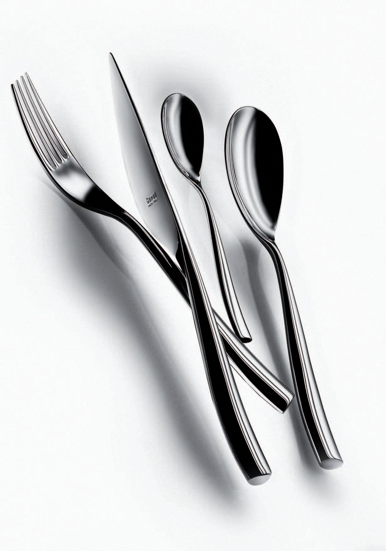 The asymmetrical and rather unfamiliar shape of this cutlery range was influenced by the way we handle certain situations relating to the table routine I was looking at the movements of the hands when dishing food out of bowls, when serving onto a plate and how this movement alters when food is conveyed into the mouth Each piece reflects these movements individually, referring to their purposes and their “actions”, as some pieces are more asymmetrical than others The overall asymmetrical shape of this range therefore supports the comfortable handling of cutlery and also acts as guide to the person who is using it