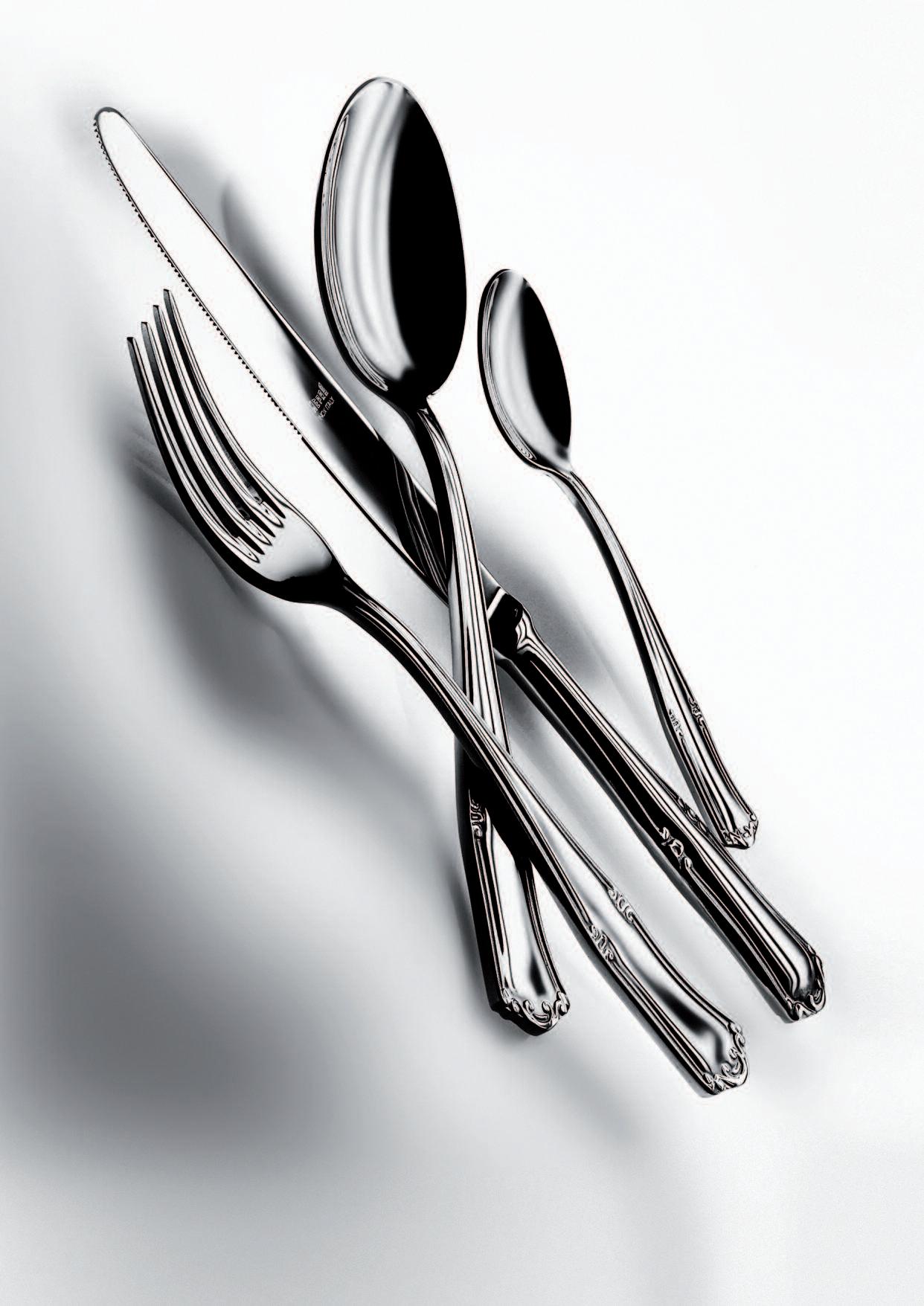 The finishings and the colors in the following pages, are available for all the flatware models and for the serveware