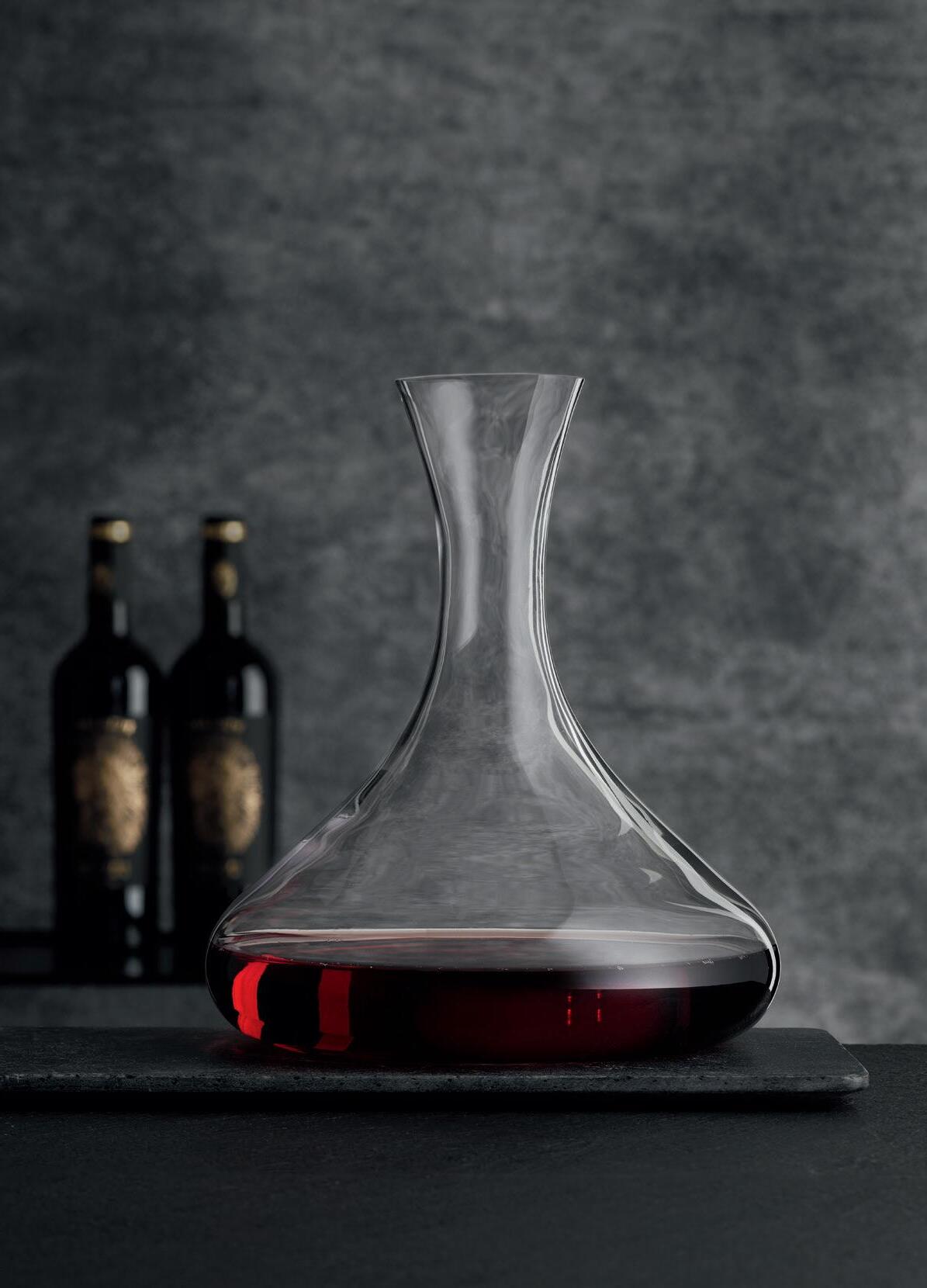 the sediment from the wine. Decanting also helps the wine breathe, as the greater surface diameter of the DEKANTER lets more oxygen reach the wine than the bottle‘s does. Red wines should be decanted well before serving and allowed to rest at room temperature for up to one hour to allow the wine to fully develop its bouquet.