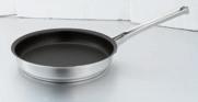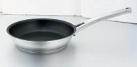 Poêles à frire en acier inoxydable haute qualité, à revêtement spécial et très résistant, fond à conduction thermique, multicouches et manches Noser massifs, vissés. Possibilité de refaire le revêtement antiadhésif.
