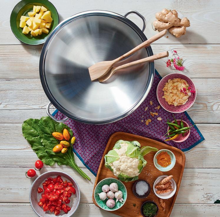 The multi-layered heat-conducting base gives the pan stability. The thick aluminium circle stores and evenly distributes heat across the entire base of the pan.