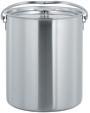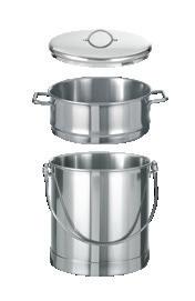 Aus hochwertigem Chromnickelstahl 1.4301 in 0.8 mm Materialstärke, mit Schüttrand, massiven Beschlägen und dickem, mehrschichtigem Wärmeleitboden.